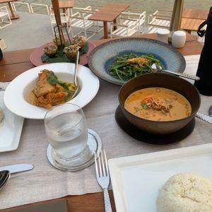 ディナーは、川沿いのレストランでとても人気があるみたいでしたが、一番景色が良い席が用意されていました。料理は、モダンタイ料理で新しい発見がありました。