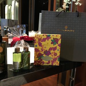 施術後にはメロンとお茶まで頂き、最後まで贅沢な時間を過ごすことができました!帰りにギフト(写真参照)も頂き、大満足です!!帰国後も暫くはハーンの香りで癒されそうです。