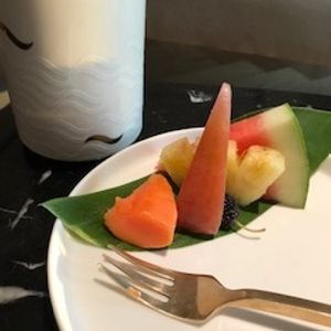 最後にお茶とフルーツをいただき、心も体もリフレッシュされて、一路日本へ向かうことが出来ました。もちろん、機内でも熟睡でした。
