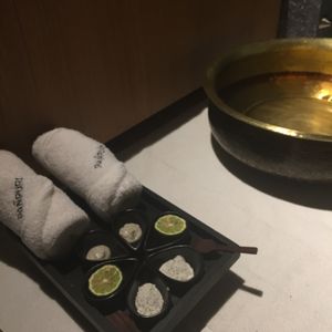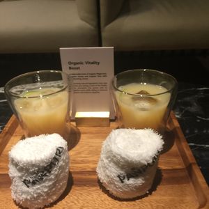 ウェルカムドリンクにはオーガニックのジュースと冷たいおしぼりが用意されており、そこで施術内容の確認がありました。4種類のオイルから1つ好きな香りを選び、マッサージの強さも聞かれました。