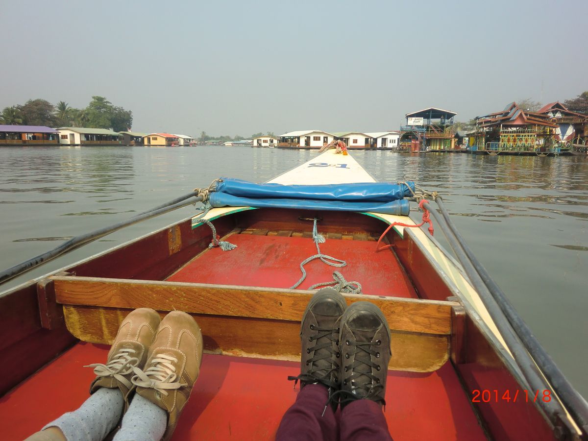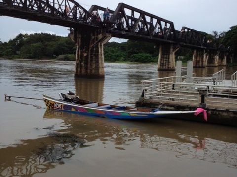 バスでカンチャナブリに着いてから、まず水上ボートに乗って戦場にかける橋のところまで行きました!