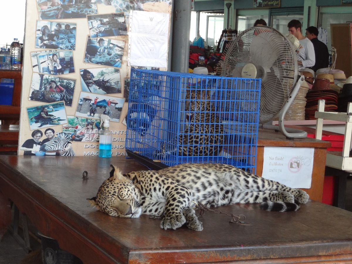 泰緬鉄道は時間通りに来ません。結局予定の時間から1時間遅れて到着しました。その間、鉄橋を歩いて渡ったり街を散策して過ごしました。街にヒョウ?の赤ちゃんがいて100バーツでミルクをあげたりお肉をあげたりできました。写真もたくさん撮ってもらいタイガーテンプルに行くよりもよっぽど良いと思います。タイガーテンプルも前日に行きましたが、昼食のレストランも同じでどちらか一方で十分なのでこちらをオススメします。レストランからの眺めは素晴らしいです。鉄道は岩山を削って通してあるところや、木製の橋などスリルがあります。