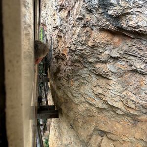 洞窟寺は、トイレが桶で水をすくって流すかなり原始的なタイプ。天気が良いと暑い中100段近くの階段を上り、途中、這わないと通れない洞窟をくぐる。
