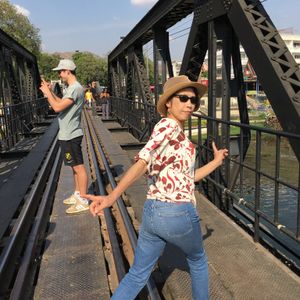 その後、連合軍共同墓地、慰霊塔を巡り、映画「戦場に架ける橋」の舞台となったクウェー川鉄橋を観光した。事前に「戦場に架ける橋」を見た上で今回のツアーに参加したが、想像に反して、街中にあるのが驚きだった。観光地として整備されており、当時の様子とはだいぶ変わってしまっていると思われるが、それでも実際に橋を歩いて渡ったり、橋を渡っている途中で列車が来たり、普段ではなかなかできない体験ができた点は良かった。