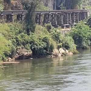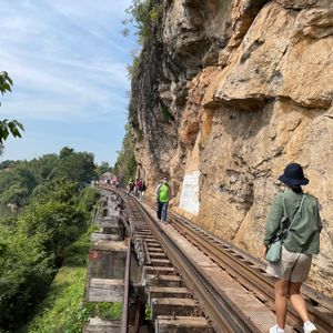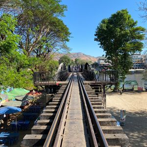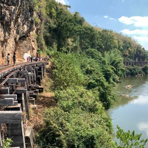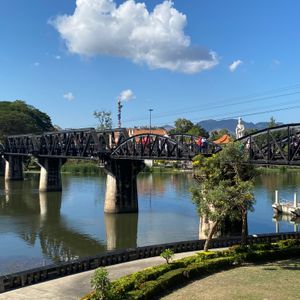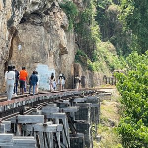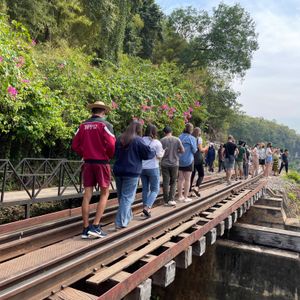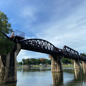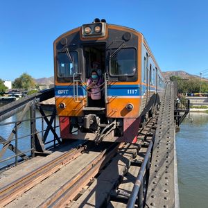 今度タイに行くときは絶対カンチャナブリーに行ってみようと楽しみにしていたのにコロナ禍になり四年越しのタイ訪問。東南アジア各国は入国制限撤廃し行くのは可能ですが関空からのLCCは再開しておらず、そもそも帰国の際のPCR陰性証明がネックとなり思いきってバンコクまで来たものの日本人観光客はまだまだ少なく、ツアーが実施されるかも不安でしたが私の他にもう1人参加者がいて無事日本語ツアーに行けました。カンチャナブリーは1日観光になるのでツアーで行くのが絶対良いと思います。個人で行くとなると列車やバスの本数が少ないので効率よく回るのは難しいです。クワイ河鉄橋、映画の橋はセットで実際は意外にも小さい橋でした。爆破されたのは一部だけでほとんどの部分は戦時中に建設された当時のままで感慨深いものがありました。泰緬鉄道1時間半乗車は貴重な体験、断崖絶壁死の鉄道、木造建築は当時の過酷な状況に涙無くして語れません。欧米人観光客で列車はほぼ満席。天気も良く最高の観光ができました。