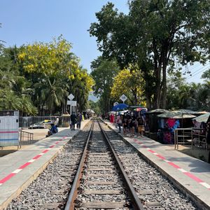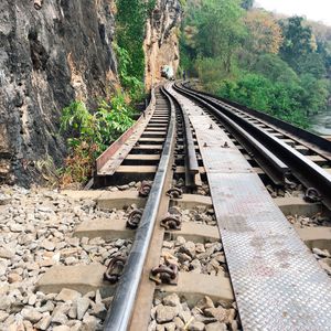 そして、クウェー川鉄橋の目の前にある駅から列車に乗り向かったのはタムクラセー駅。見どころは駅を出発してすぐに渡るクウェー川鉄橋と、タムクラセー駅到着の直前に渡るタムクラセー桟道橋。タムクラセー桟道橋はタムクラセー駅到着後に歩いて渡ることができる。柵がなくスリルがあるが、線路から眺める景色はとても美しかった。