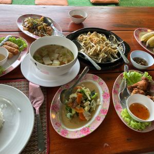 ランチはタムクラセー駅から歩いて5分ほどのところにあるレストランでブュッフェ。決してきれいなレストランではなかったが、美味しいタイ料理を食べることができた。