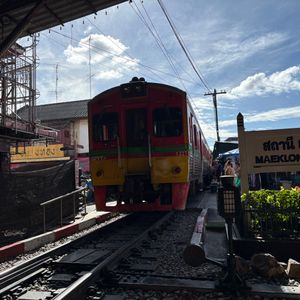 メークロン市場は早めに着いたため市場をじっくりと見て回ることができました。電車が通過するさいには間近で見れたのがすごく良かったです。