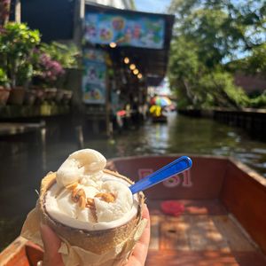 水上マーケットではココナッツアイス(60バーツ)を是非食べてください!
