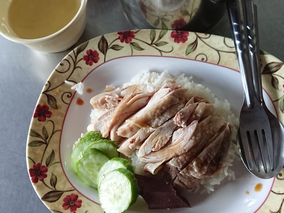 ココナッツジュース・カオマンガイなど朝食を取って電車を待つ。
