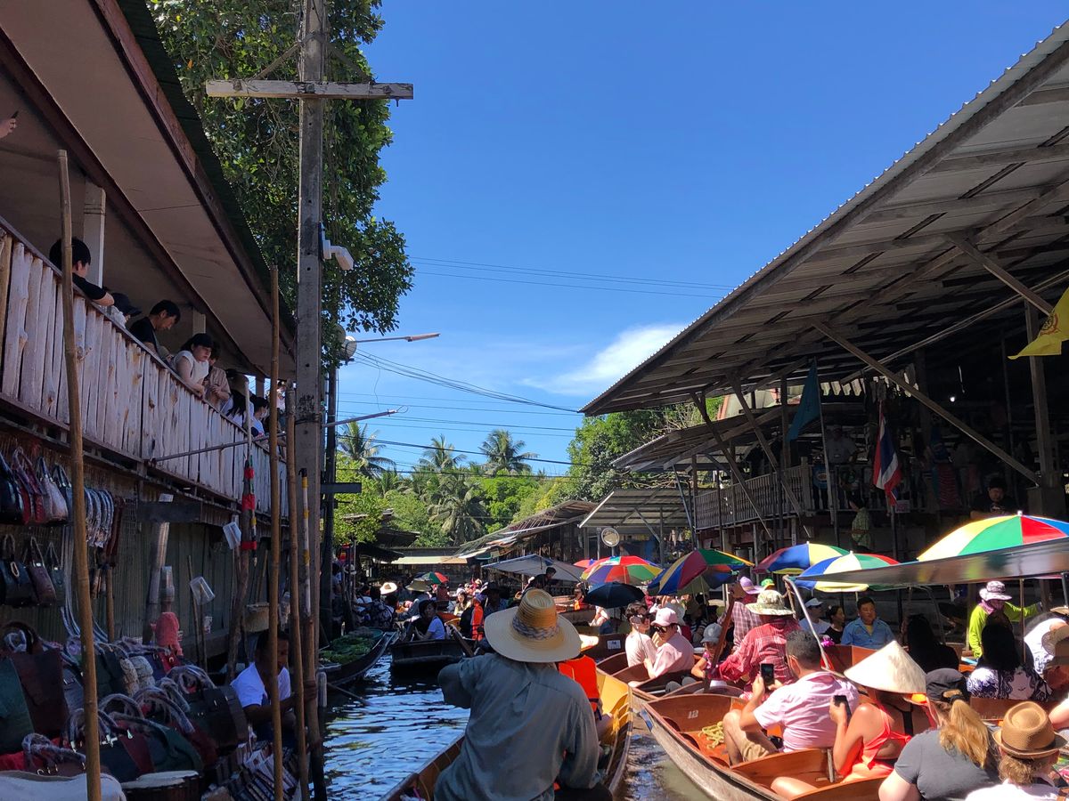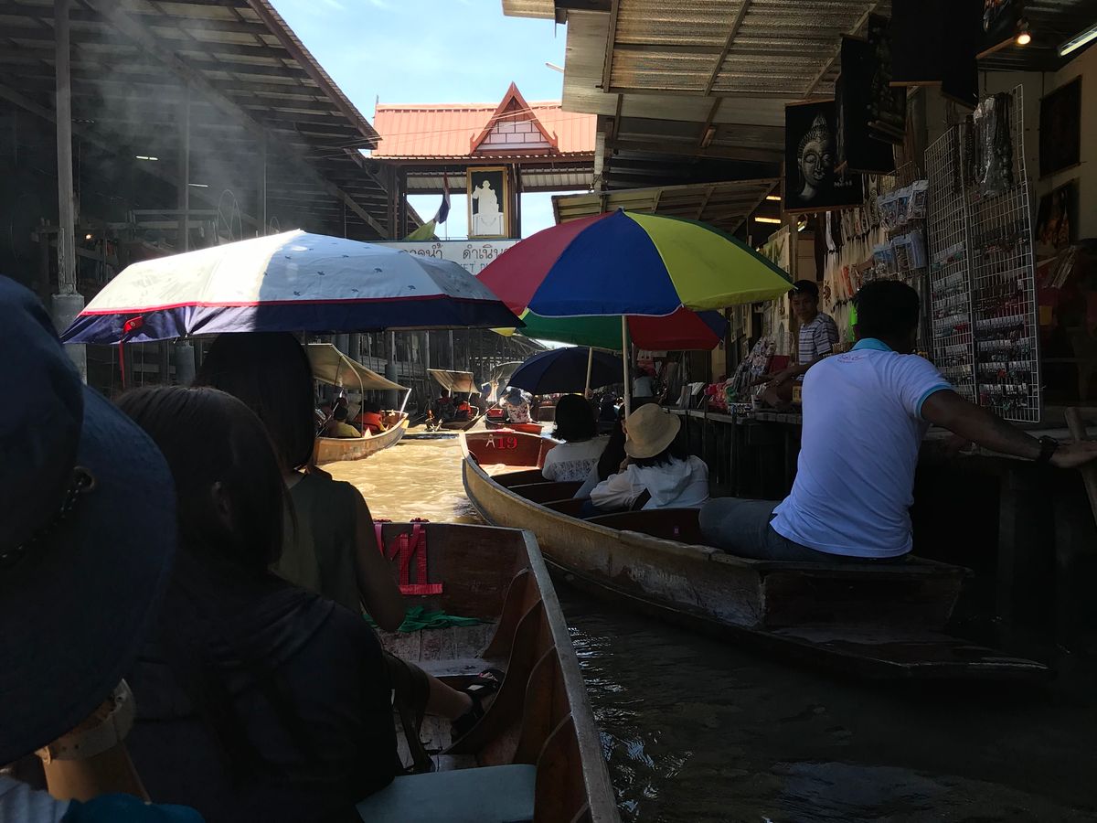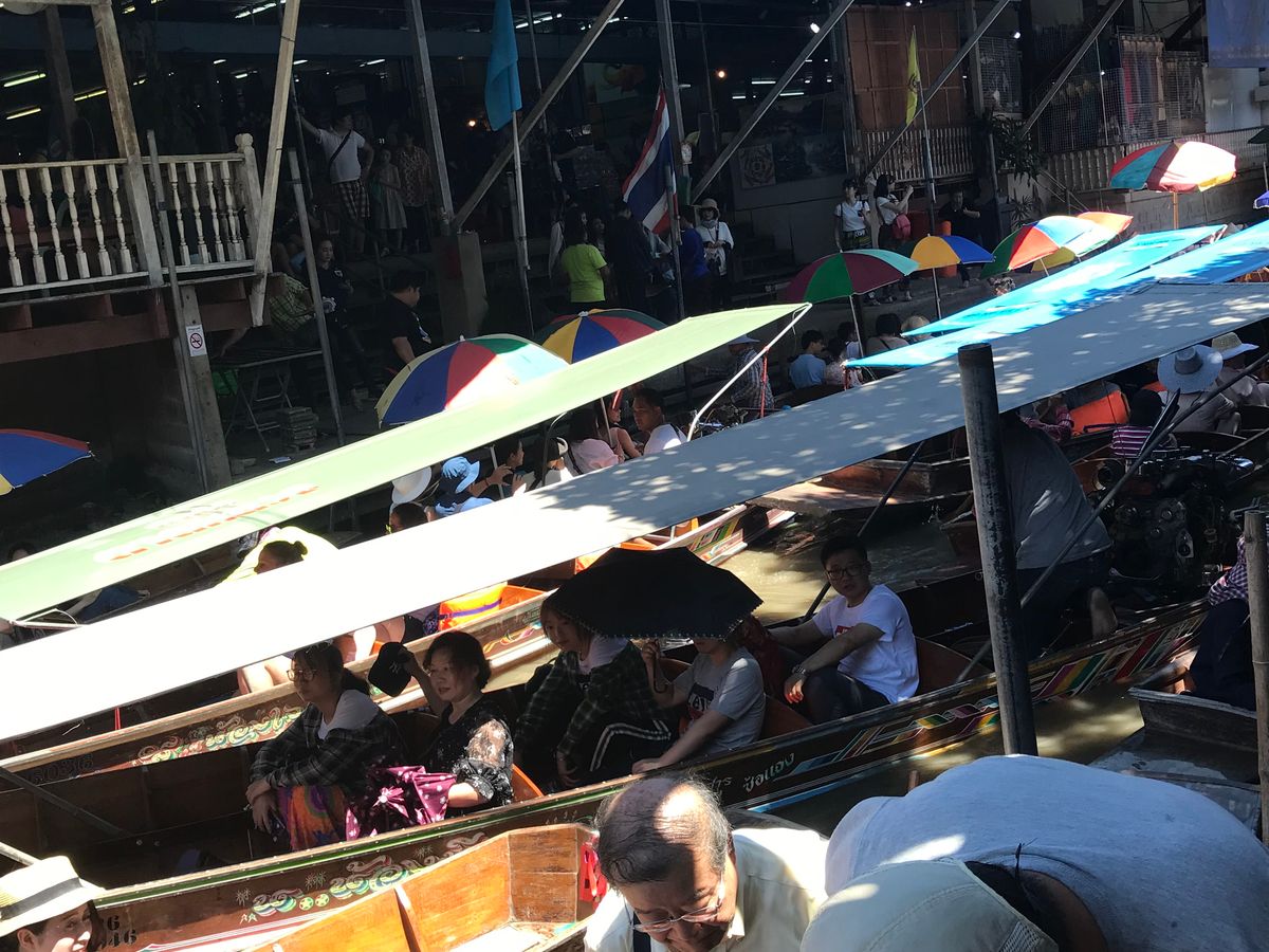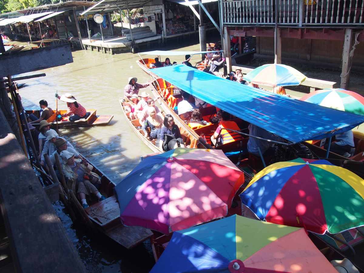 ツアーに参加していて一番良かった事は、クーラーのきいた車で移動できた事!38℃という気温の中では、自由に観光はちょっとしんどいですね。メークロン線路では、列車が来る所が見られたし、水上マーケットでは、モーターがついたボートに乗れて、遊園地のアトラクションみたいで楽しかった!マーケットではお土産も買えます。バイキングのランチも美味しかったです。最後にアユタヤ遺跡。1日で満喫できました。楽しく、楽ちんに観光できて、お得だと思います。特に、暑い季節はツアーに限ります‼️