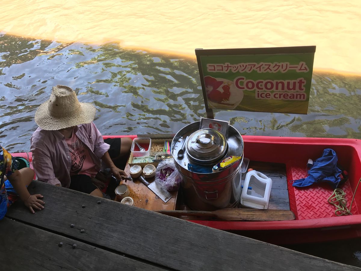 マーケットの後でラーメンを食べに行きました。別の方の口コミを見てトムヤムラーメンを食べるのをとても楽しみにしていましたが、私たちのガイドさんはスープの種類をこちらに聞かずに全員同じ塩味のラーメンを注文したため、とてもがっかりしました。ラーメンの後のアイスクリームは何種類かある味の中から好きなものを選びました。
