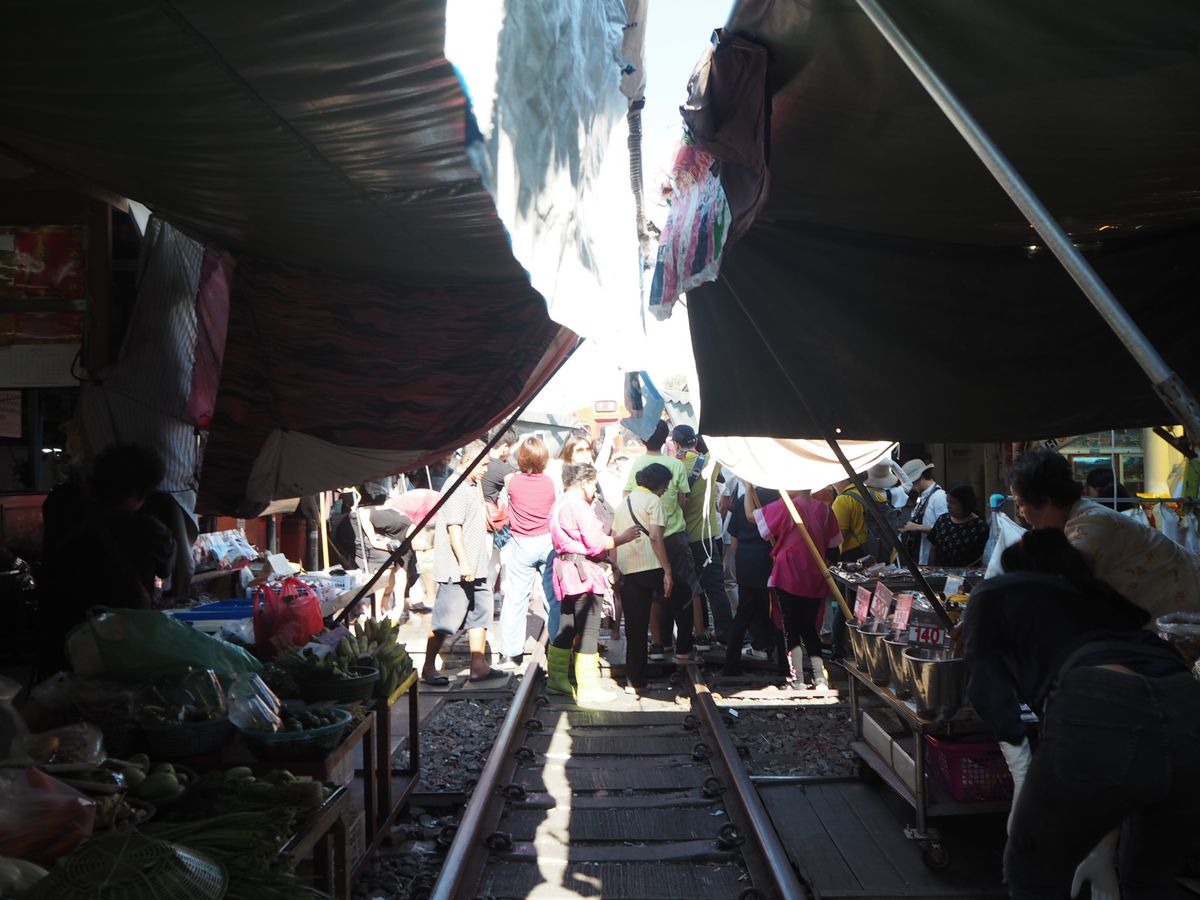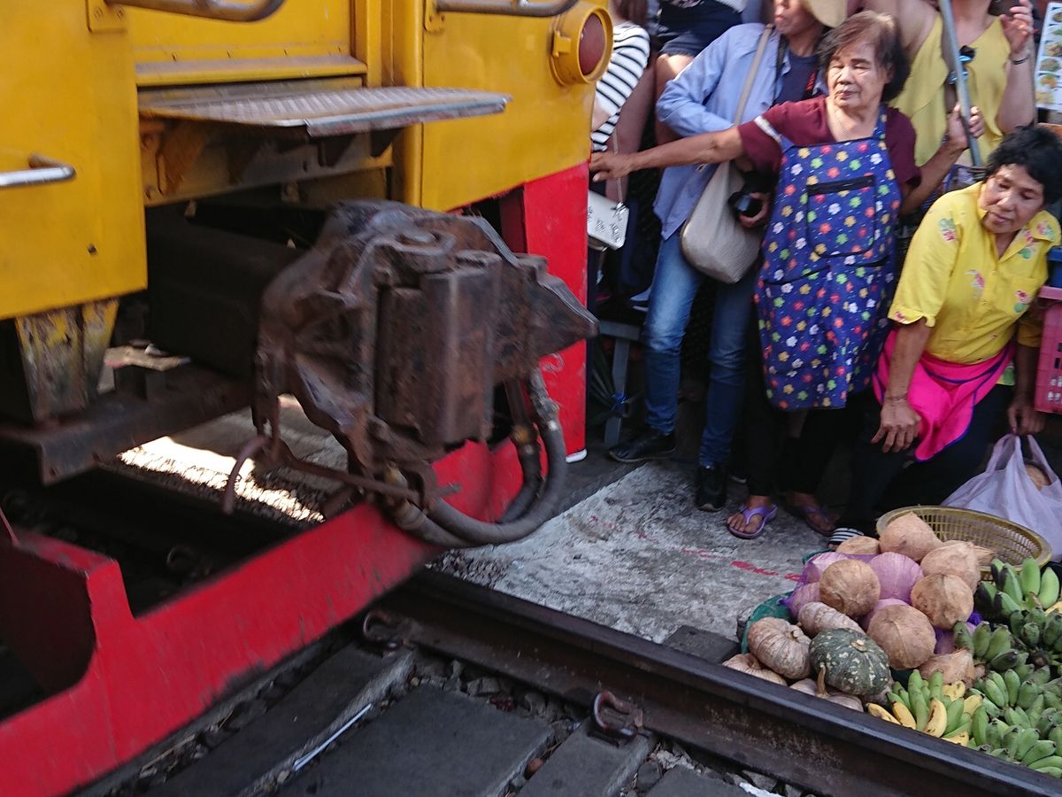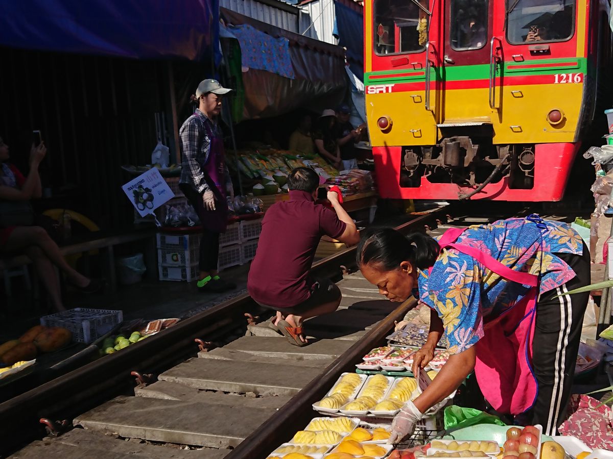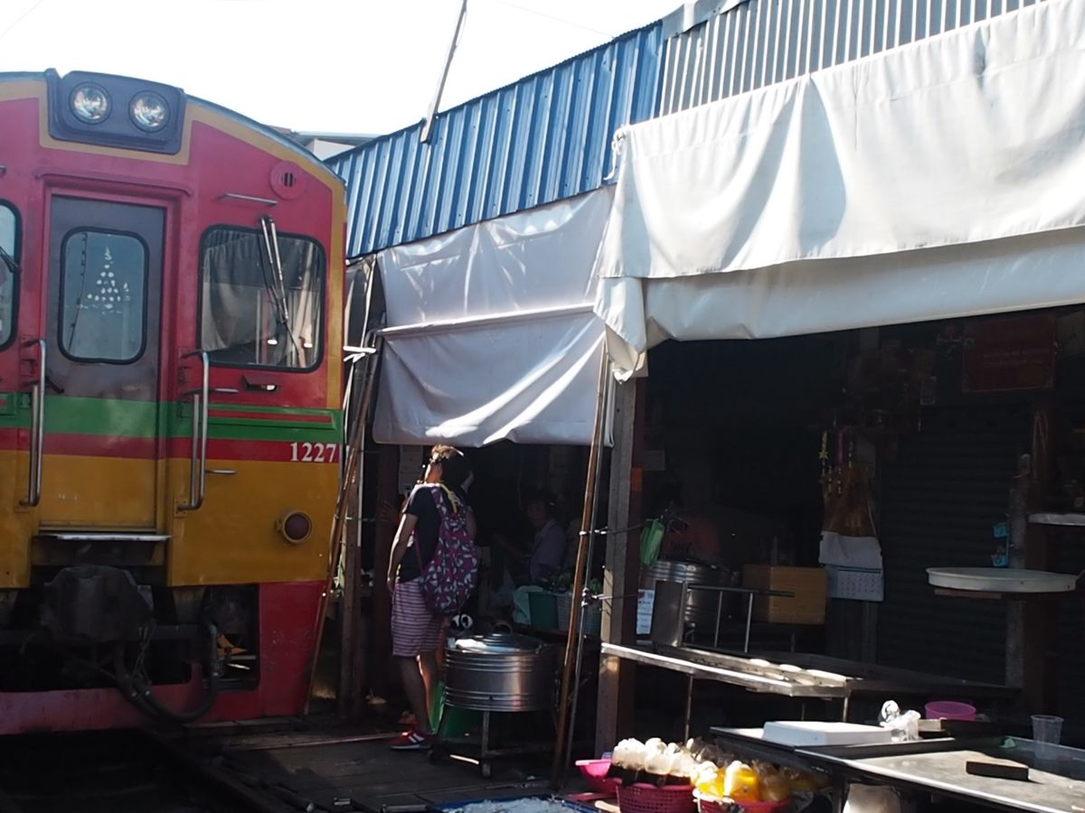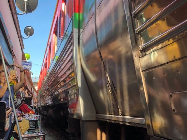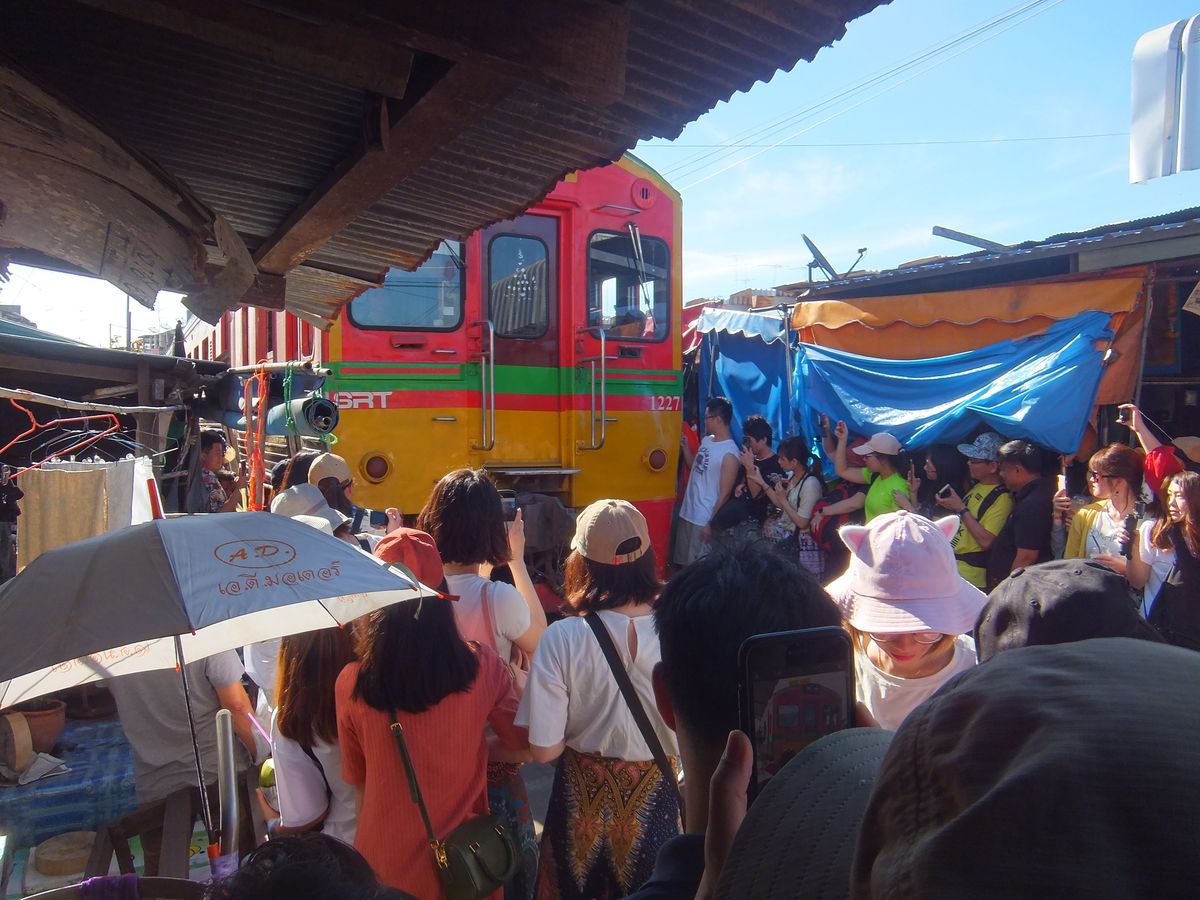 一番印象的だったのはメークロン線路市場で、電車が通過する時刻まで線路上で食品などを売買している光景が日本ではないため、印象的でした。電車通過時、順番に商品やその上の日よけのテントが撤収される様がとても印象的であった他、迫ってくる電車の迫力もすごかったです。