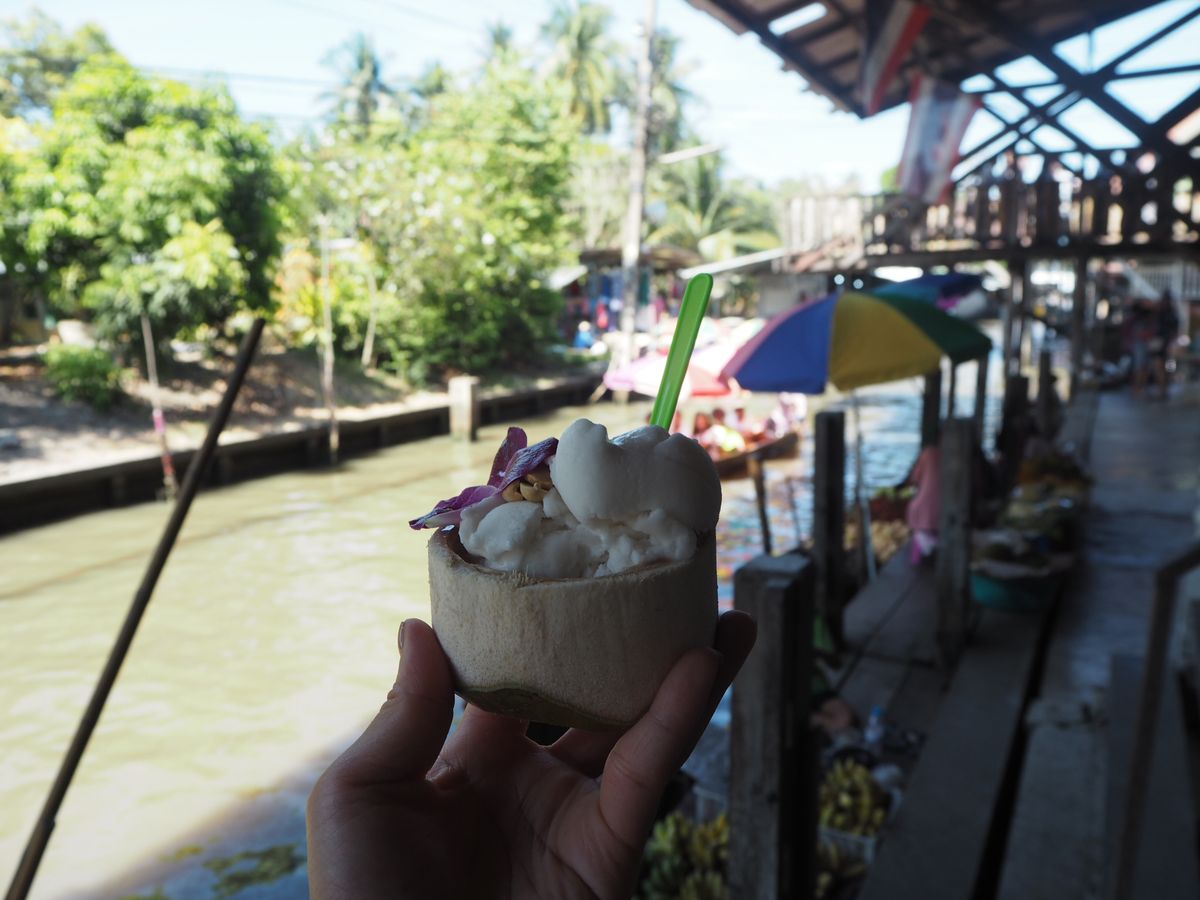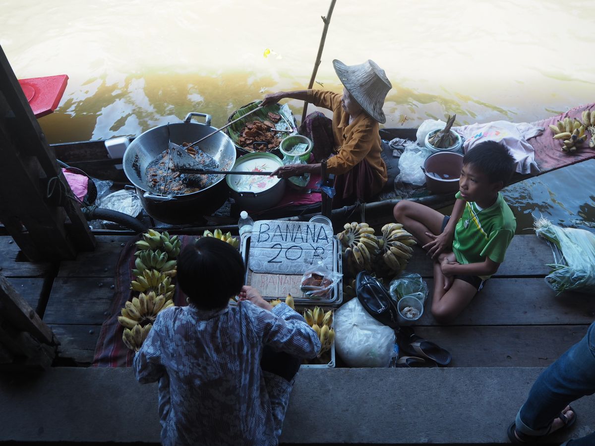 ガイドの人が水上マーケットで待ってるときに小さいバナナや現地のお焼きをご馳走してくれとても美味しかったです。