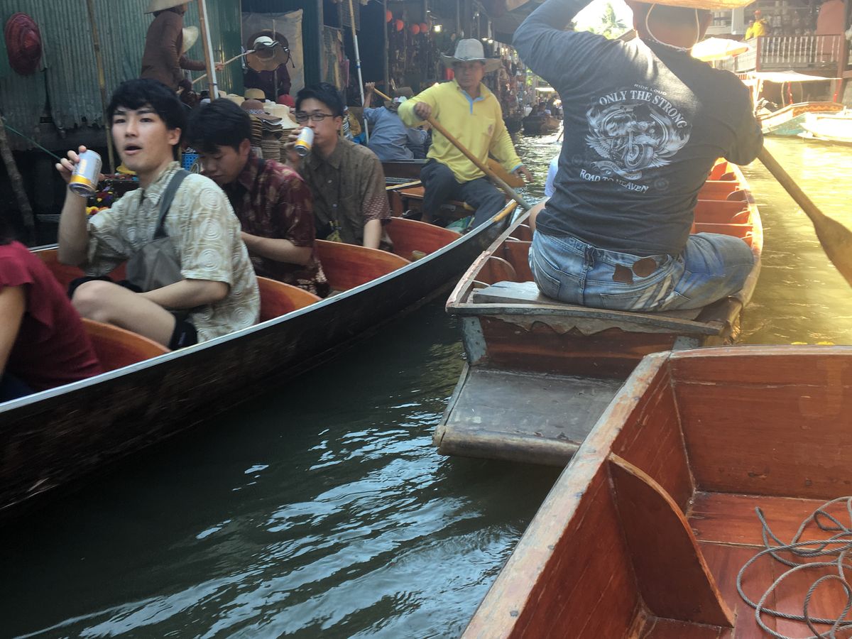 水上マーケットは、モーターボートのスピードがとても早く、さながら絶叫マシーンでした。