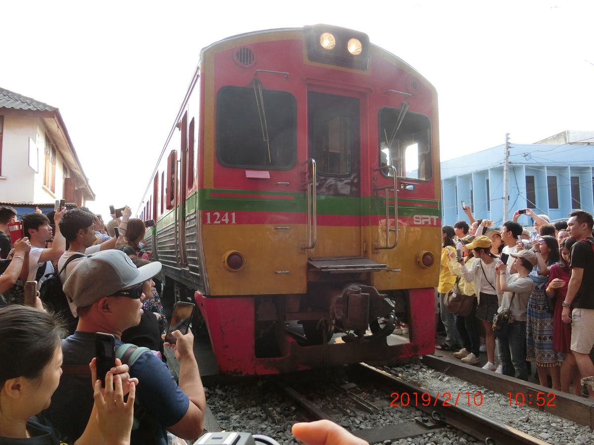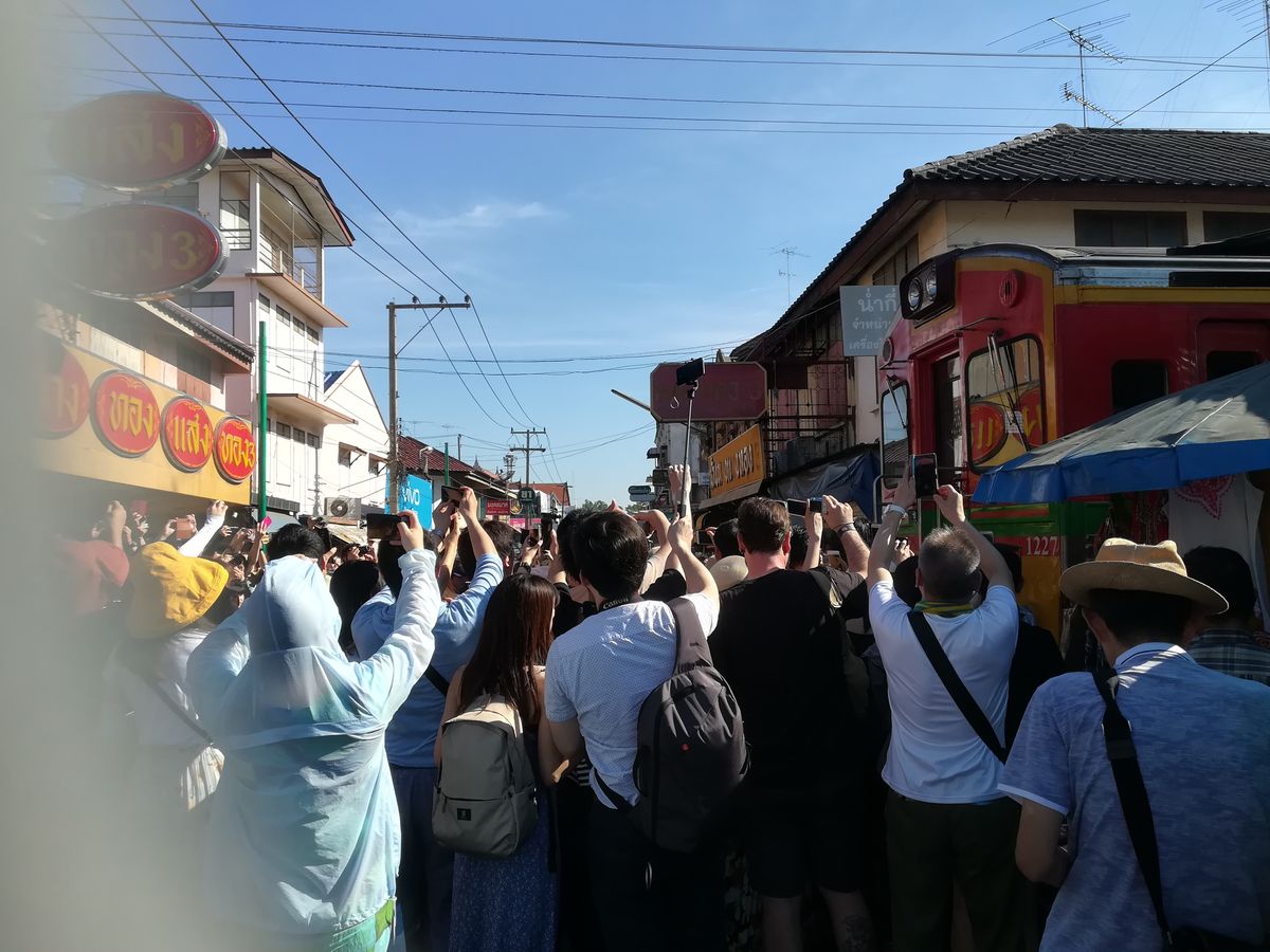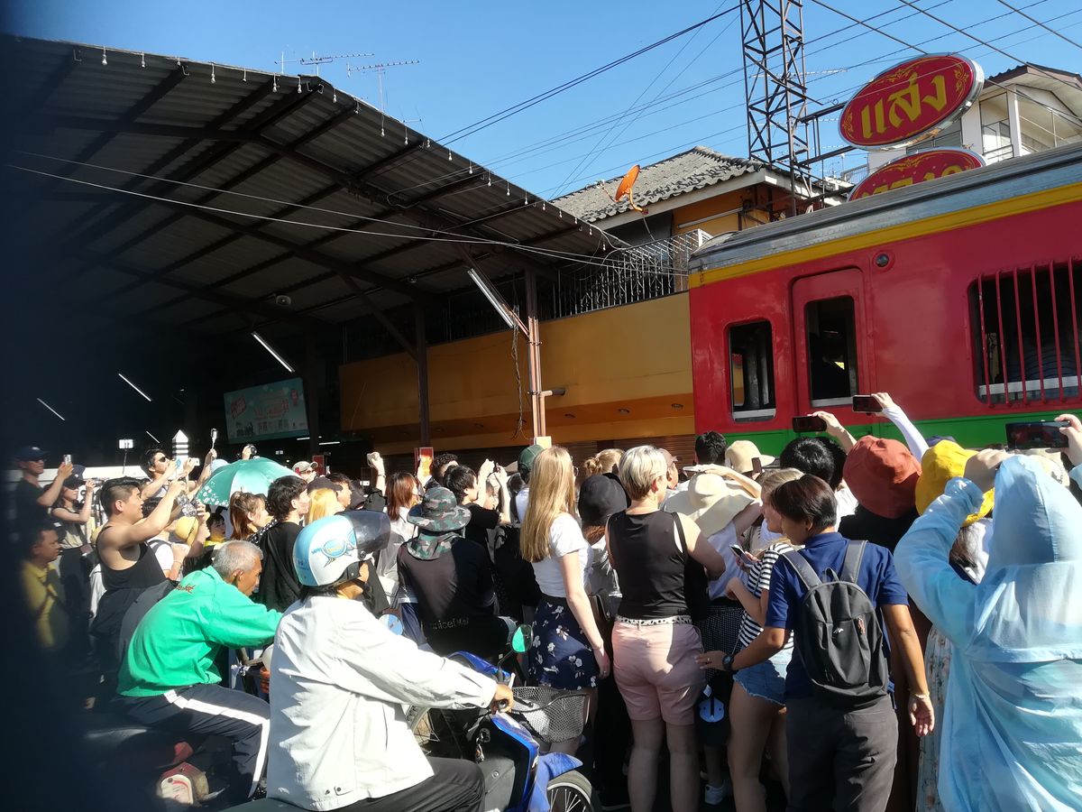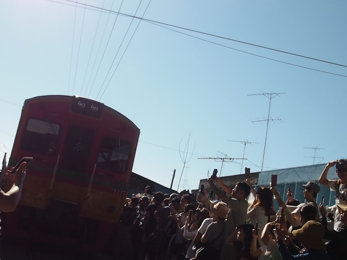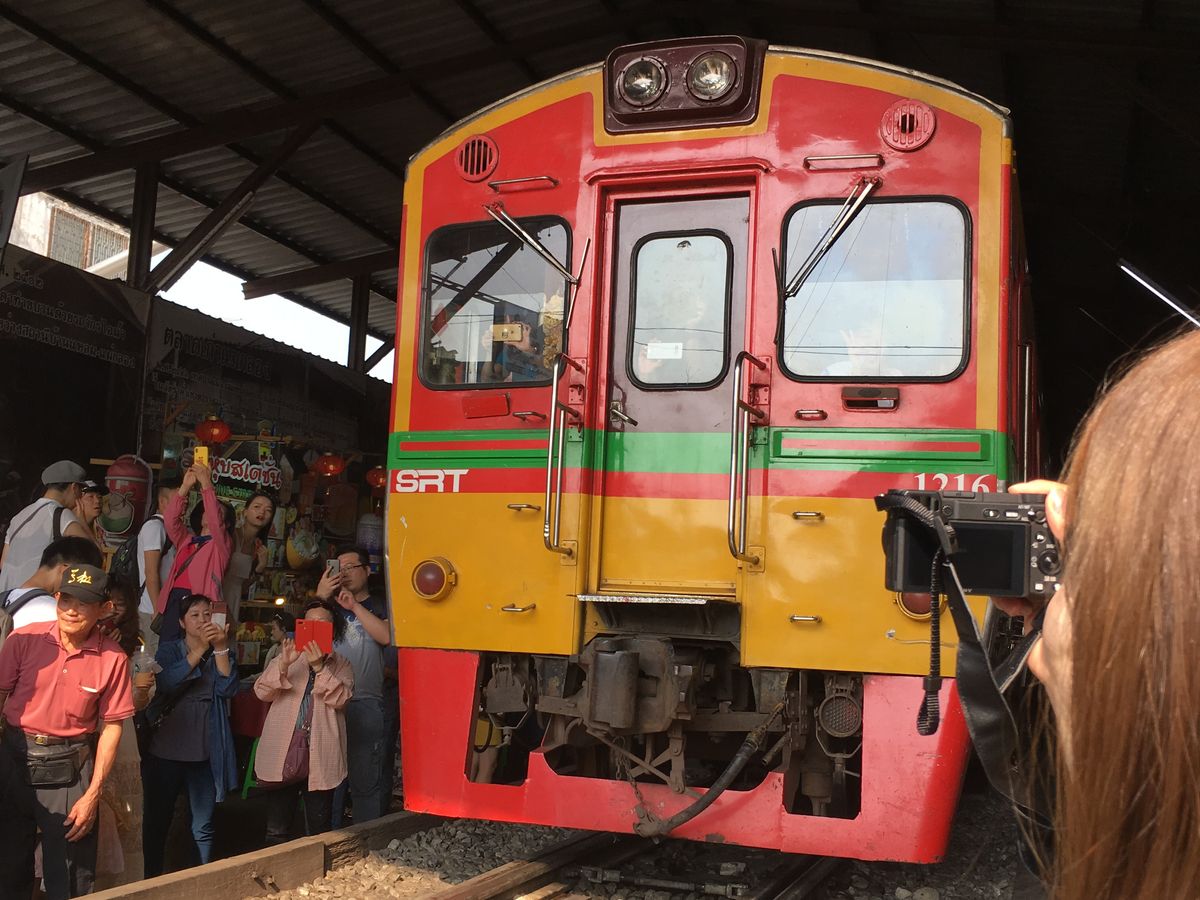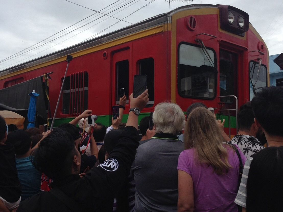 GWで観光客も多かったからか、メークロン市場の電車は早めに場所取りしておかないと人だかりでよく見えません。