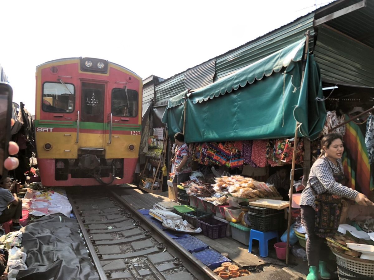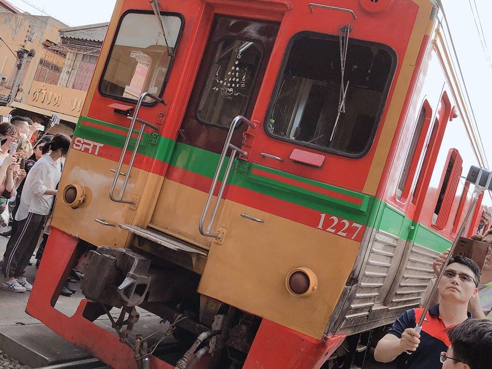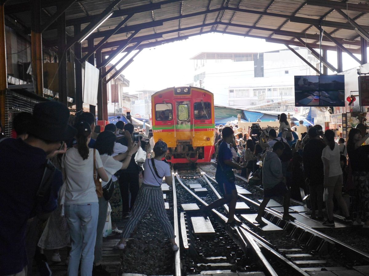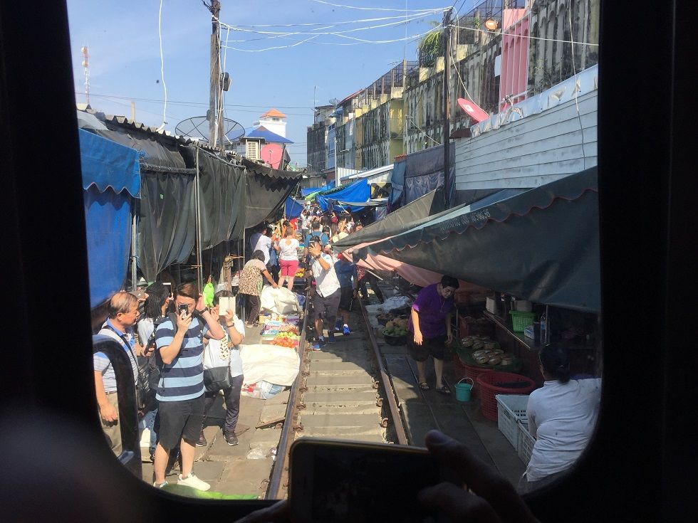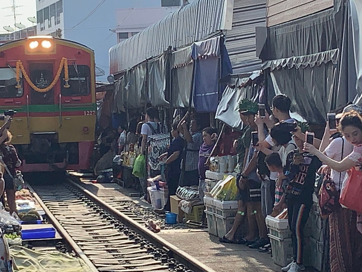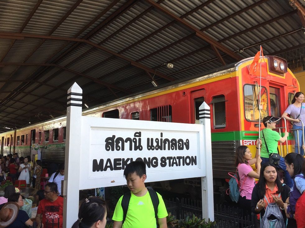 GWで観光客も多かったからか、メークロン市場の電車は早めに場所取りしておかないと人だかりでよく見えません。