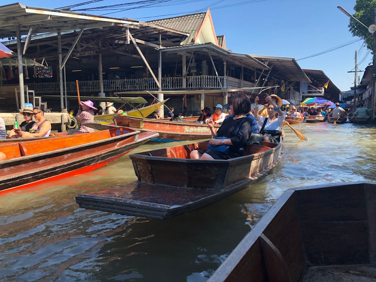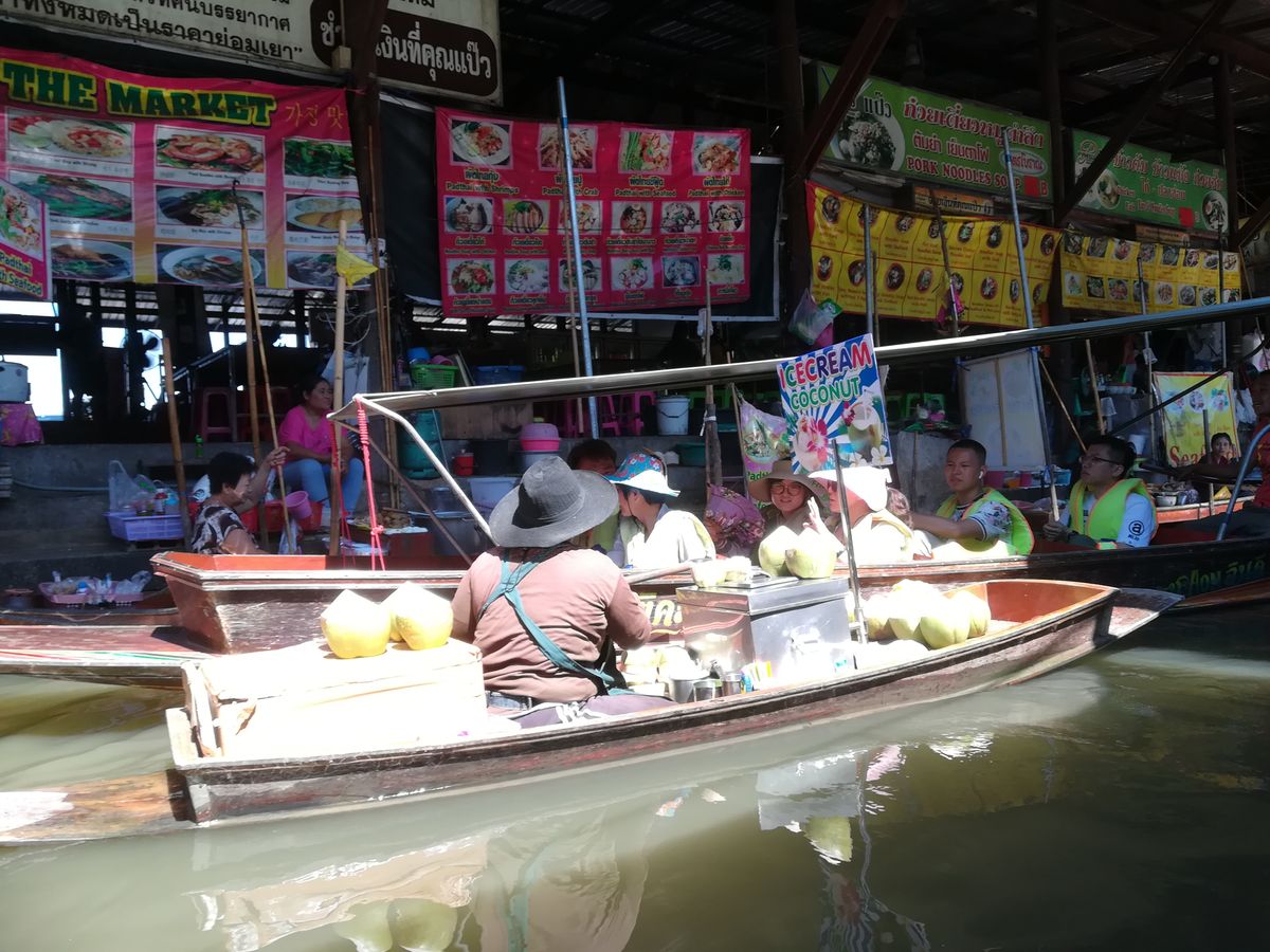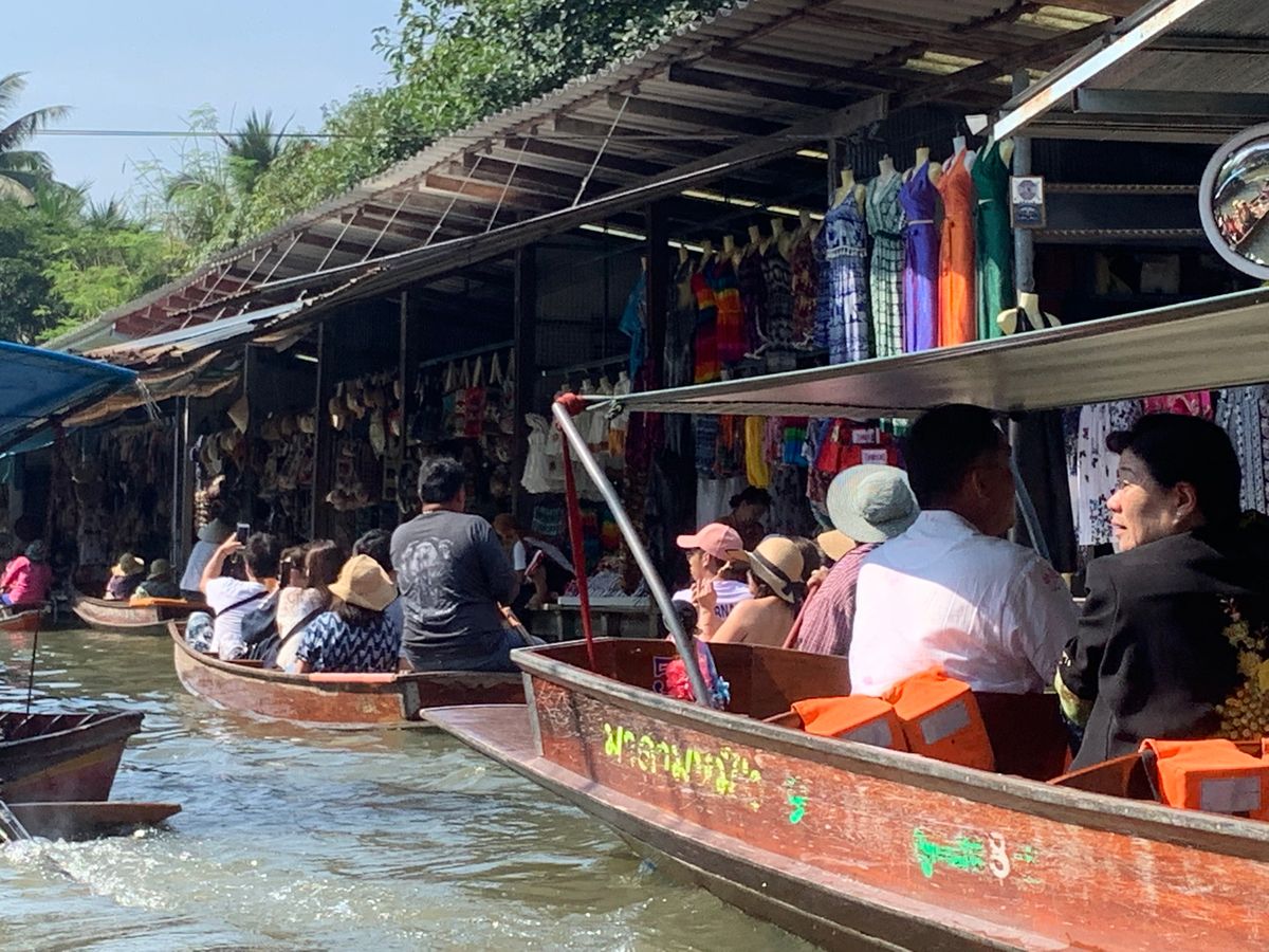 ゴールデンウィーク中に参加したので日本人観光客がほとんどでした。メークロン鉄道は迫力があり良かったです。メークロン市場も見学でき、列車を待っている間にパッタイを40バーツで食べることができました。水上マーケットに行くまでの水上ボードがあり、アトラクションのようで楽しかったです。ランチのタイラーメンは辛いのと辛くないのが選べてとてもおいしかったです。食後のココナッツアイスにも満足しました。あまりランチ時間がないので早めに食べることを心がけるとよいです。
