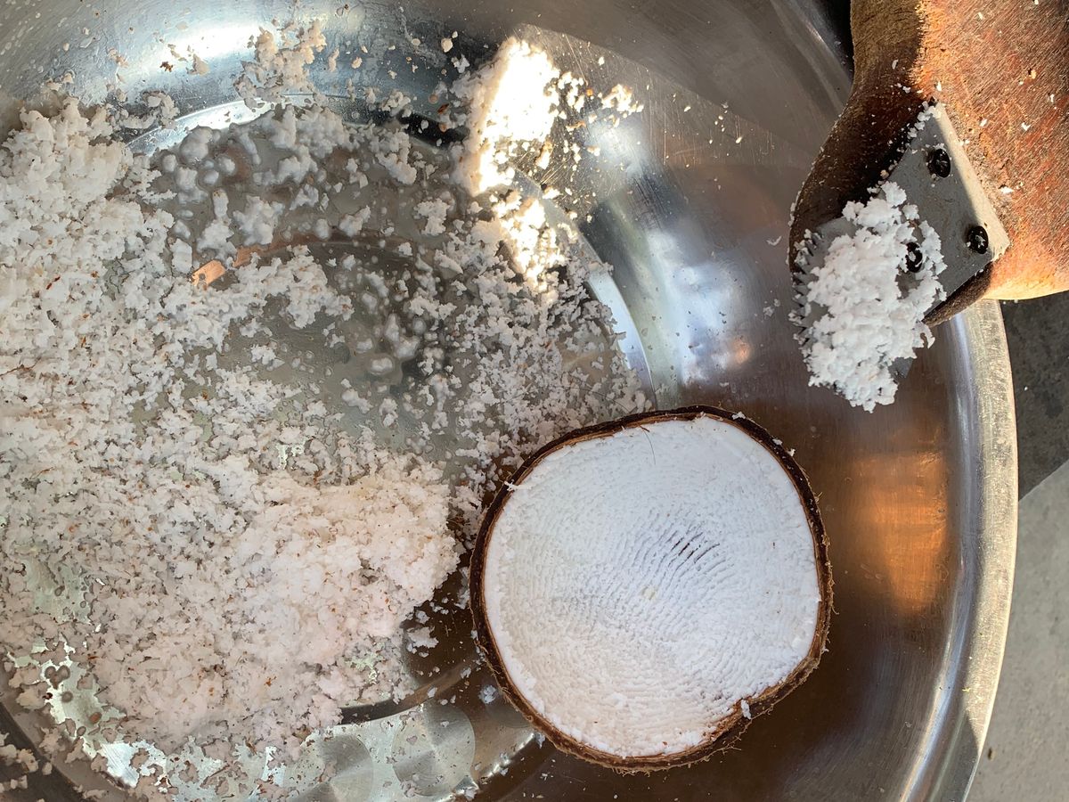ココナッツオイルを値切って買っていました。