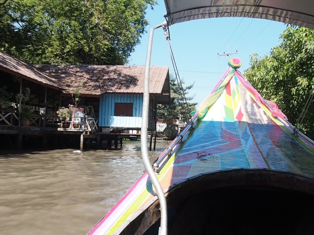水上マーケットの、エンジンボートはアトラクションみたいで、楽しすぎます。