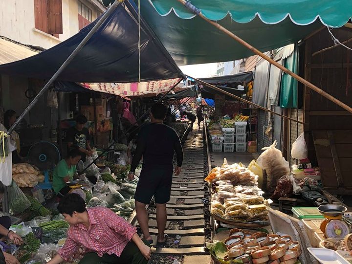混雑しているメークロン線路市場もガイドさんの計らいで、ベストポジションから見学できました。