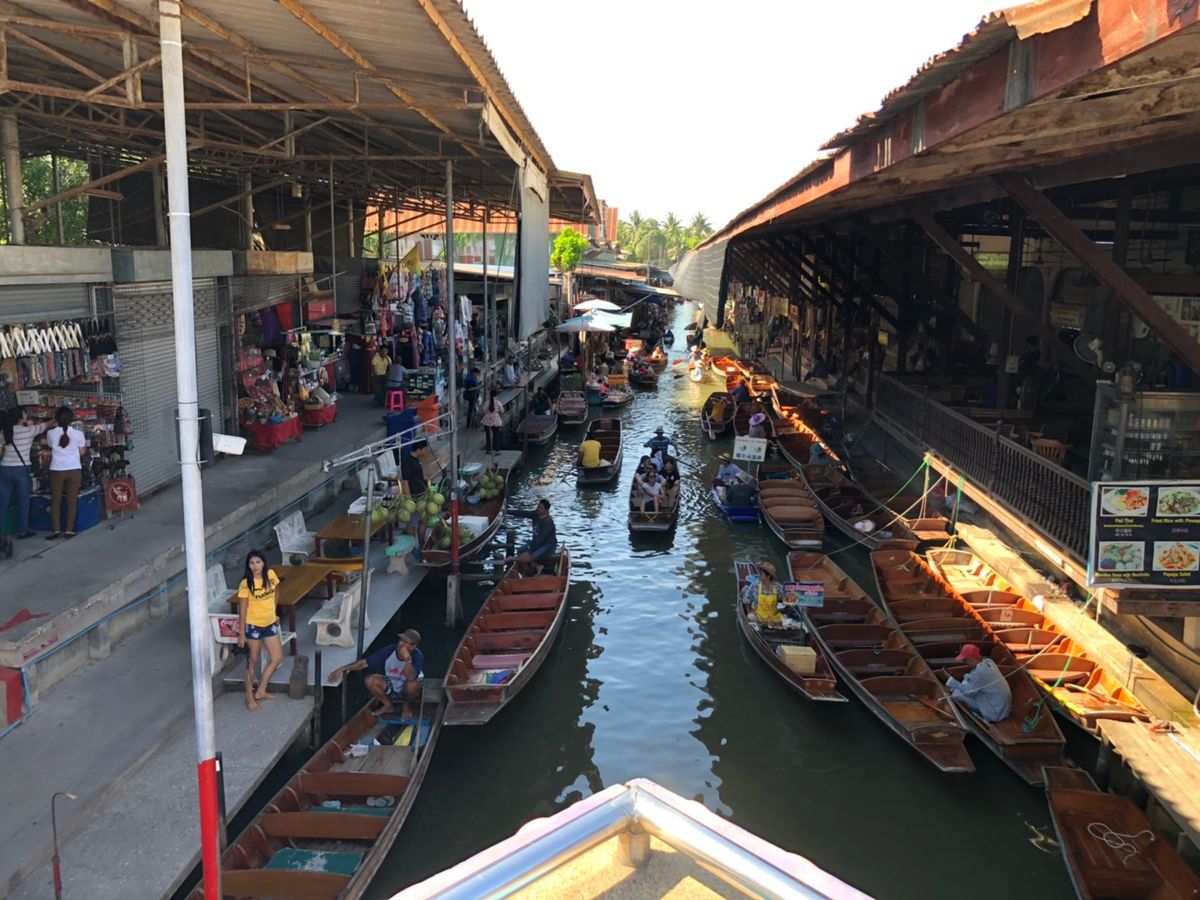 少し遠出となる主要観光スポットアユタヤ遺跡と、いつかどこかで見たことのある興味深いスポットの水上マーケットや線路マーケットが全て盛り込まれたツアーです。