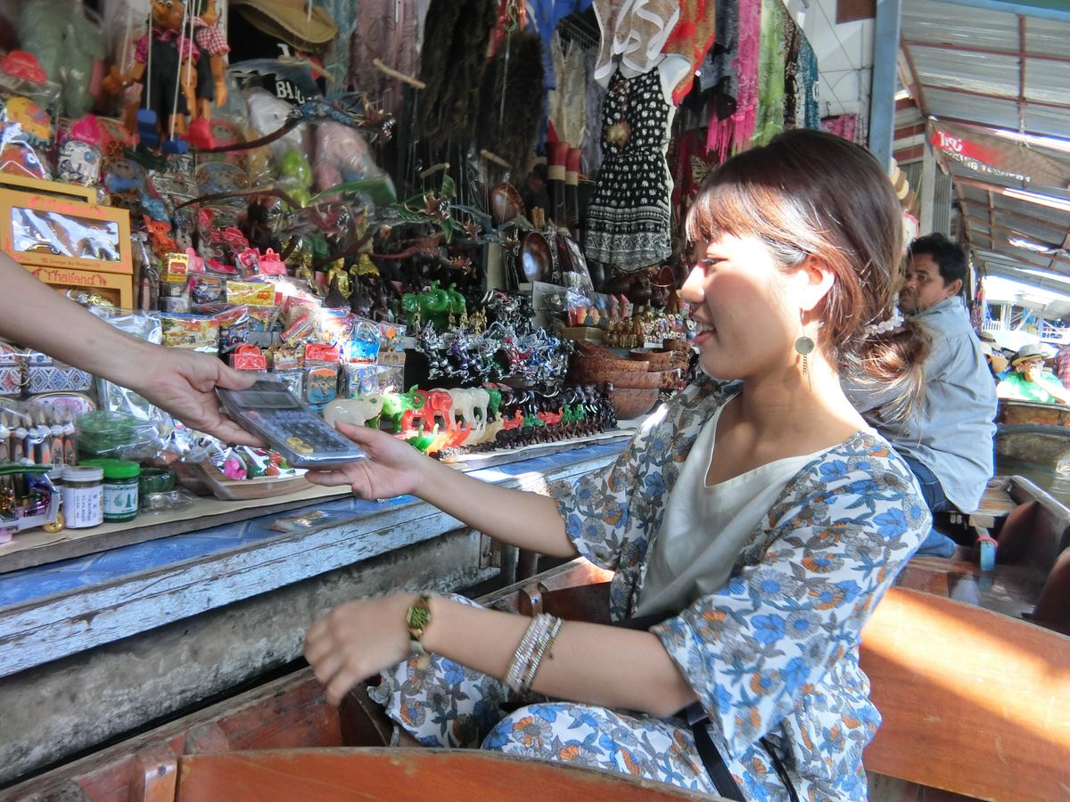 水上マーケットは手漕ぎボートにも乗られることをオススメします。川の両脇にあるお店を見ながらボート同士が行き交うので、手漕ぎならではの不安定感が逆にスリル満点でした!!また、電動ボートはスピードに乗ってどんどん進むのでこちらもまた違ったスリルを味わえます。ローカルな雰囲気でタイの日常生活を感じたい方にオススメです。