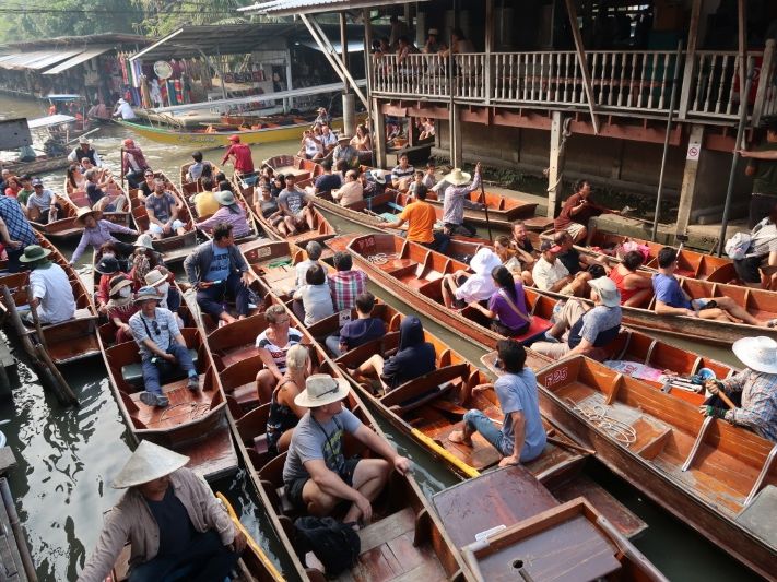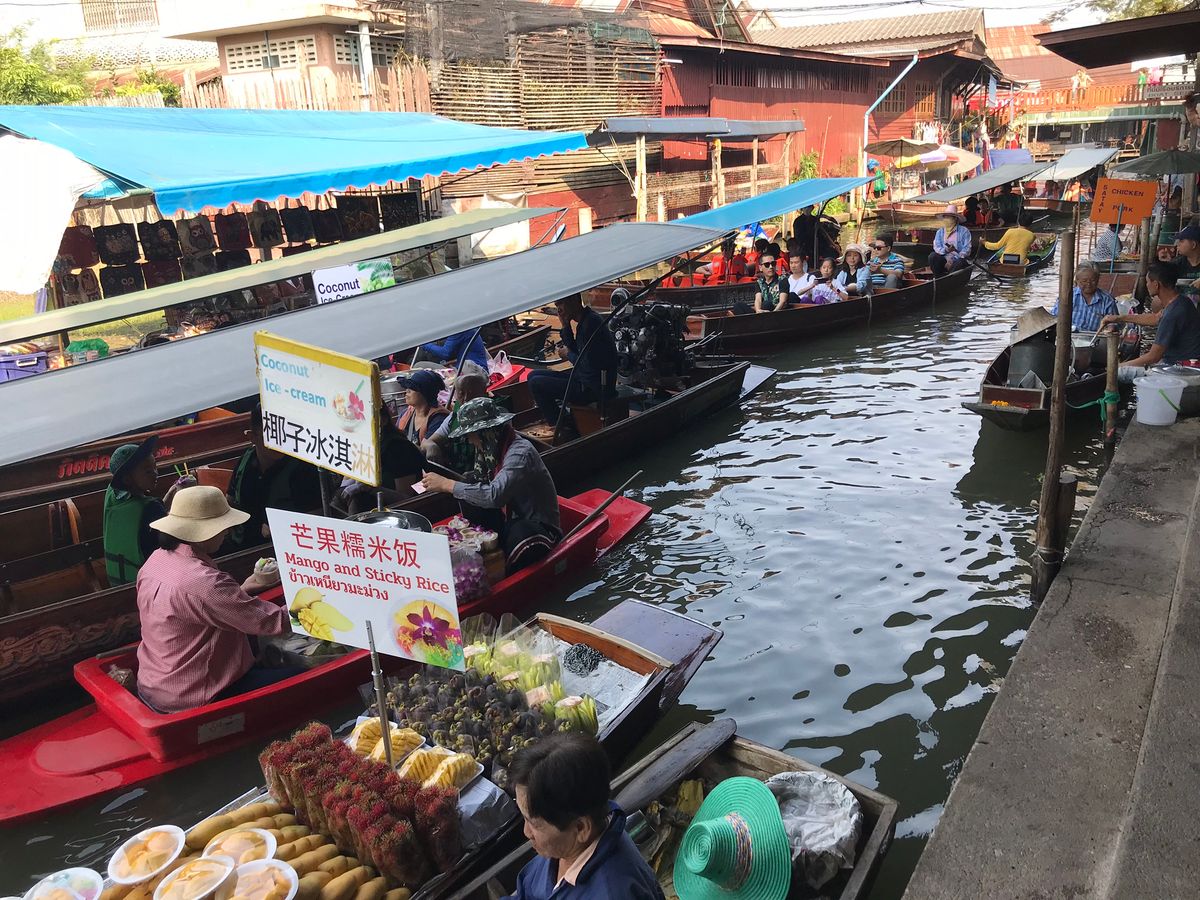 有名な線路市場と水上マーケットを早朝から一度に回るツアーです。線路市場は非常に混雑していいポジションを確保するのが難しく、ガイドさんからもう少しアドバイスがあると良かったです。水上マーケットは手漕ぎボートの乗り方がわからず陸から見ていましたが、途中モーターボートでも水路を通るので十分でした。タイラーメンはなかなか美味でした。