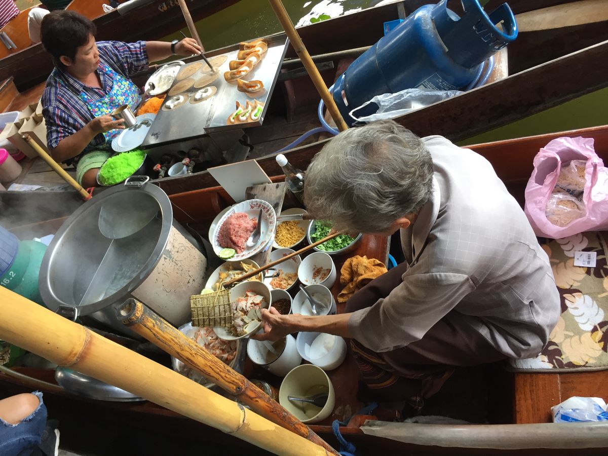 水上マーケットの舟は、かなりのスピードで楽しめました。バンコクに来てからの、食事が口に合うものがあまりなく、ラーメンとアイスがとても美味しかったです。