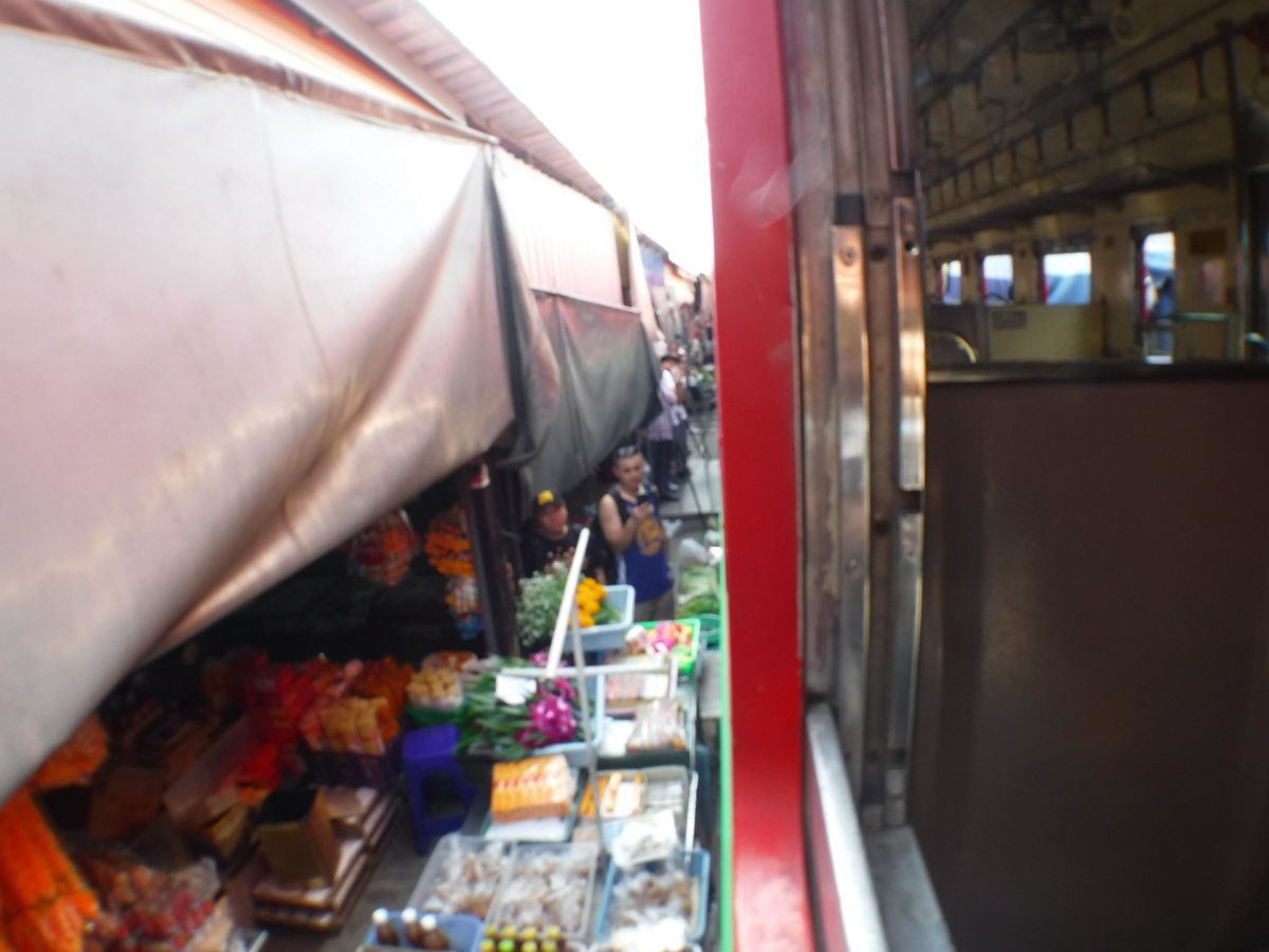 メークロン線のテントの折りたたむ様子が、乗っていたのでは、見れないというのはうすうす感じてはいましたが、それが見れなかったのは残念です。ただ線路の上にまで商品が並べられていて、人々の喧騒が見れたので、よかったです。