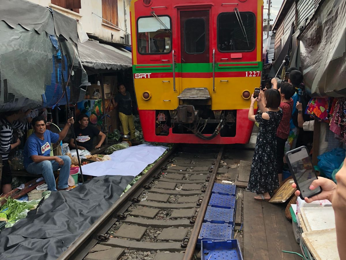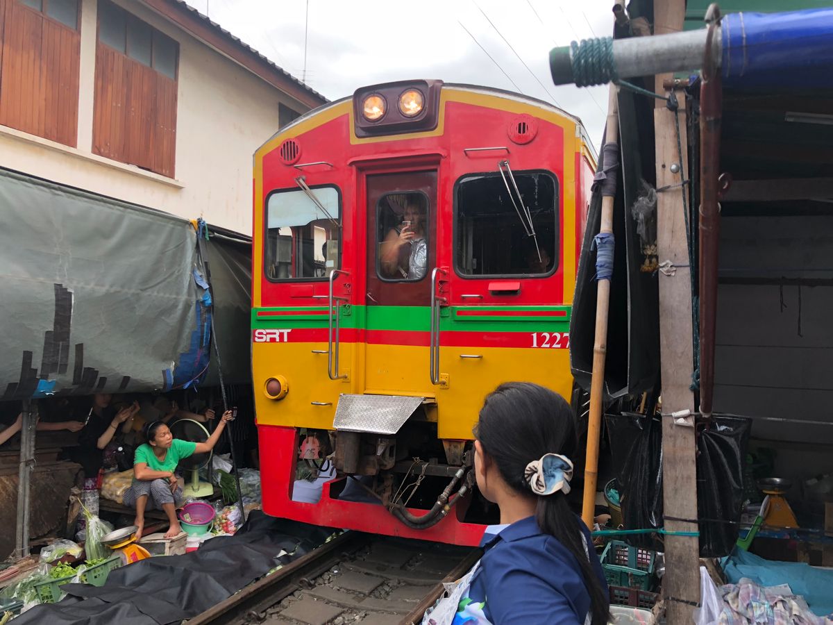 ・線路市場では、電車が来る瞬間は市場内に入らなかった為、市場をたたむ瞬間は見れませんでした。もしかしたら、ツアー客に子供がいる為、もしくは次の水上マーケットに早く行きたい為、ガイドさんの裁量によるのかもしれませんが、電車が目の前を通り、臨場感バッチリで十分だと思います。