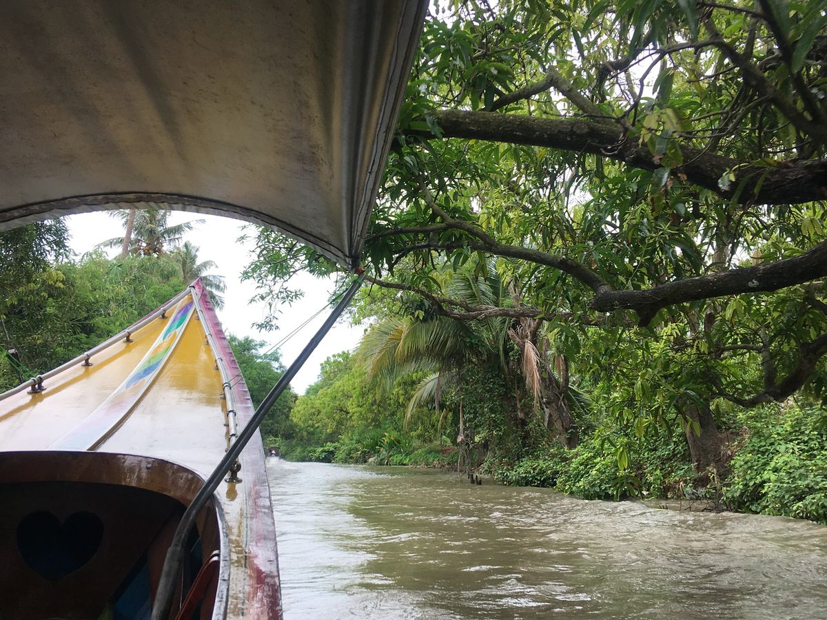 モーター船で行く水上マーケットまでの航路は、民家の点在する水路をハイスピードで駆け抜けるもので、独特の雰囲気でした。参加して良かったです。