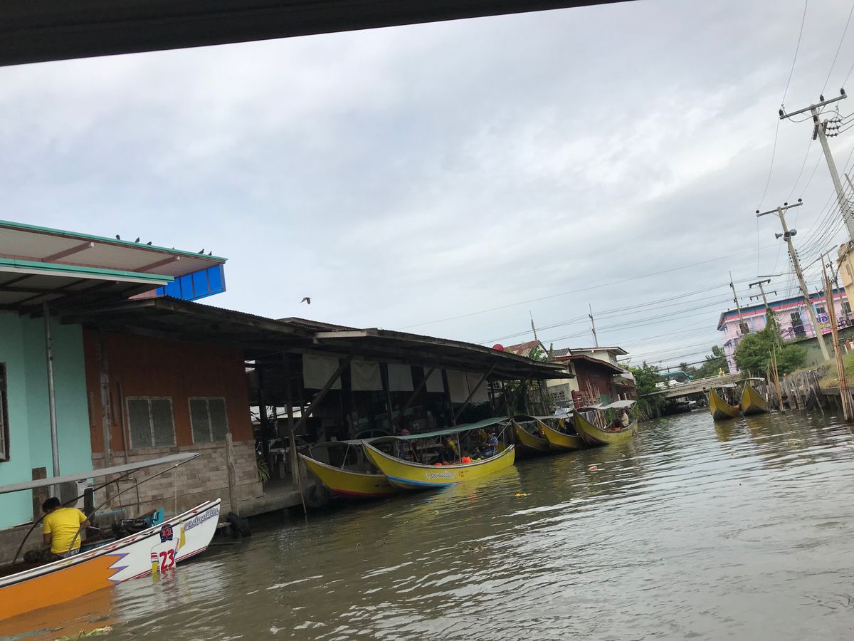 水上マーケットに向かうスピードボートが予想以上に長い距離で、涼しく快適に過ごせました。手漕ぎボートのオプションを200バーツでつけましたが、これは20分と時間が決まっていて、移動距離は込み具合により変わるみたいです。