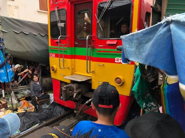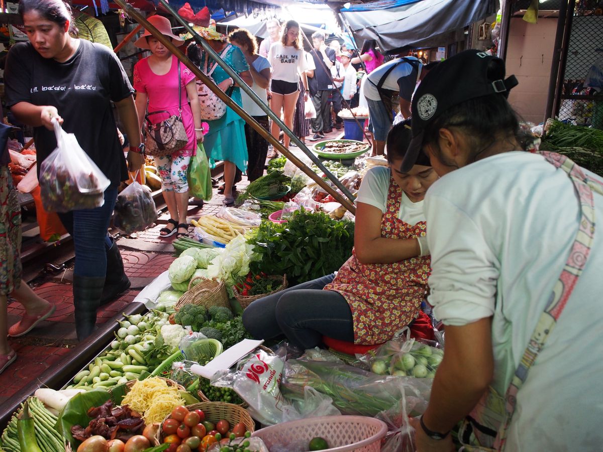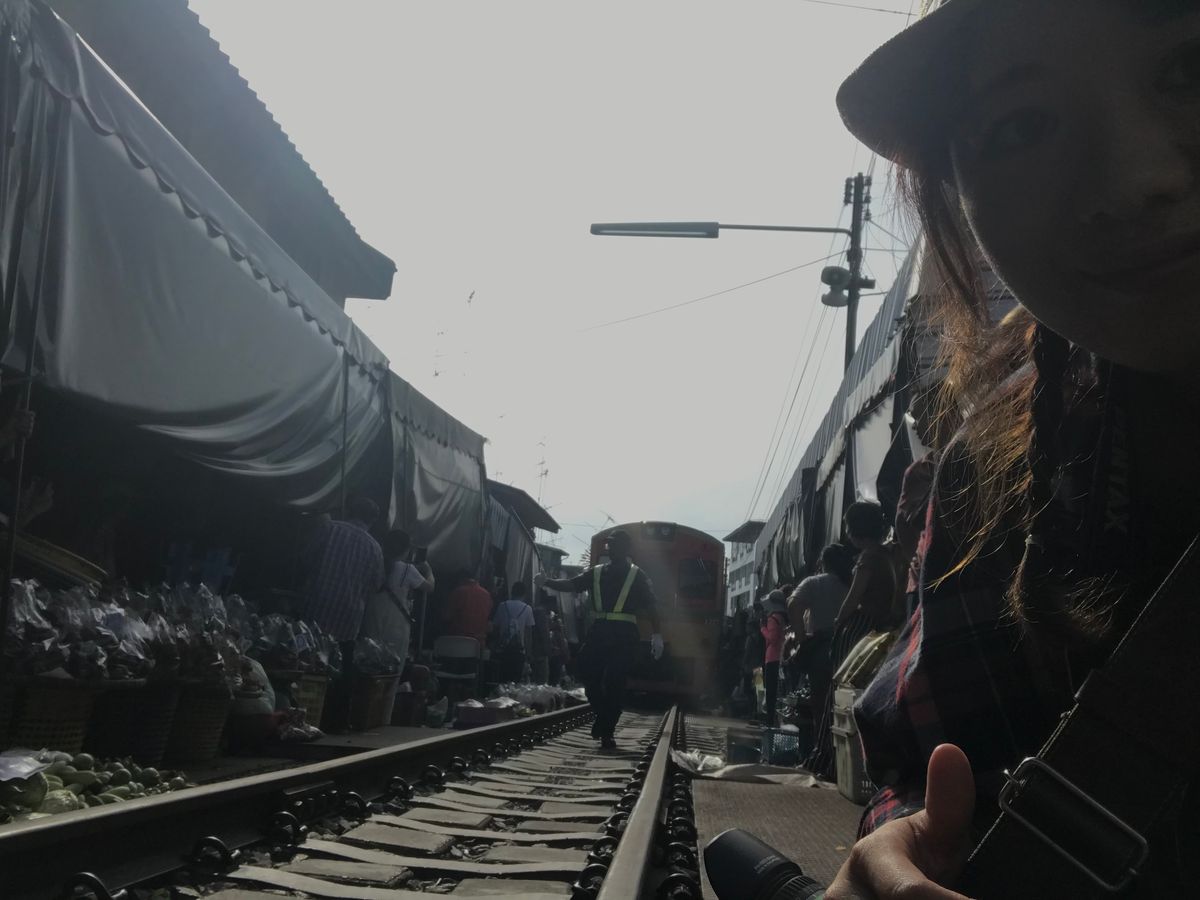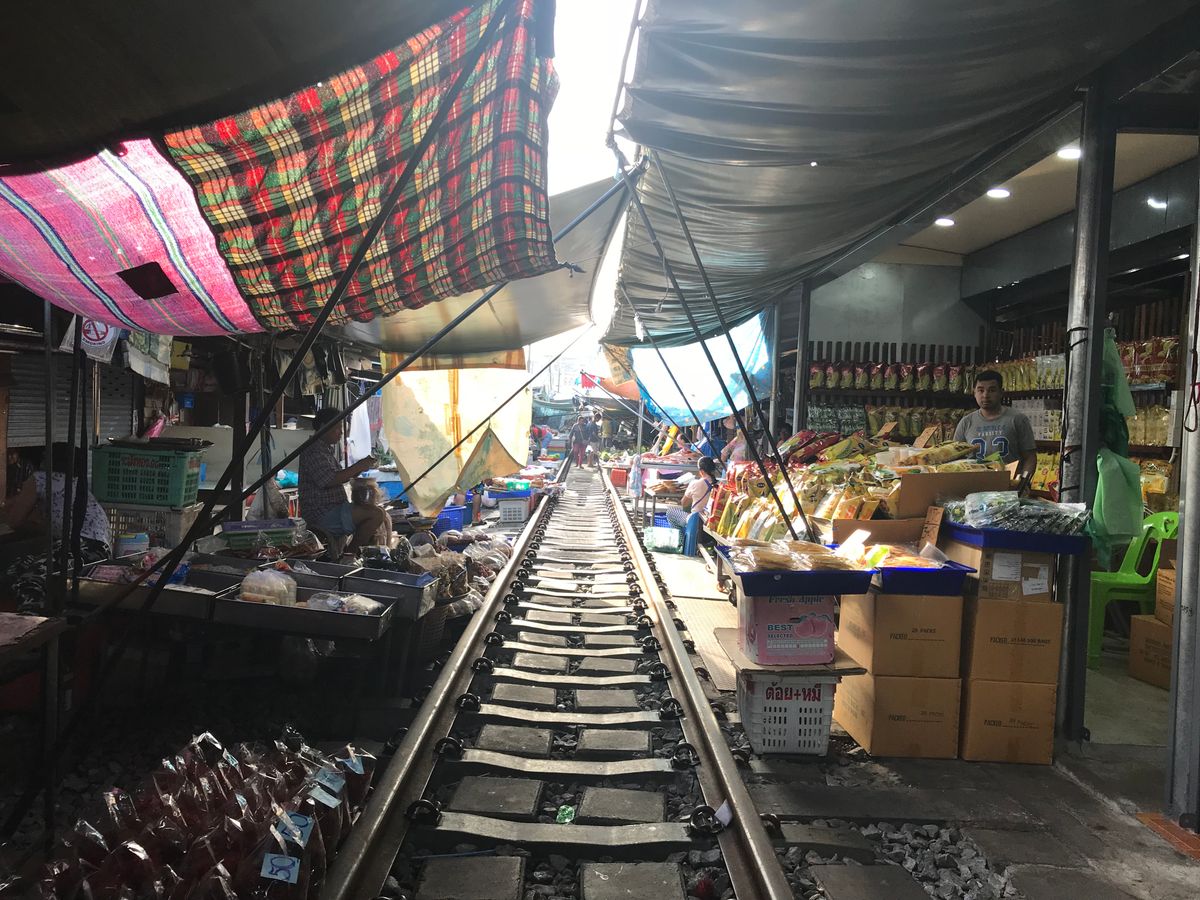 メークロン市場についてはネットや本で知っていましたが、実際に見てみると、汽車との距離が想像以上に近く、迫力がありました。お店の開閉の手際もとても良い事に驚きました。