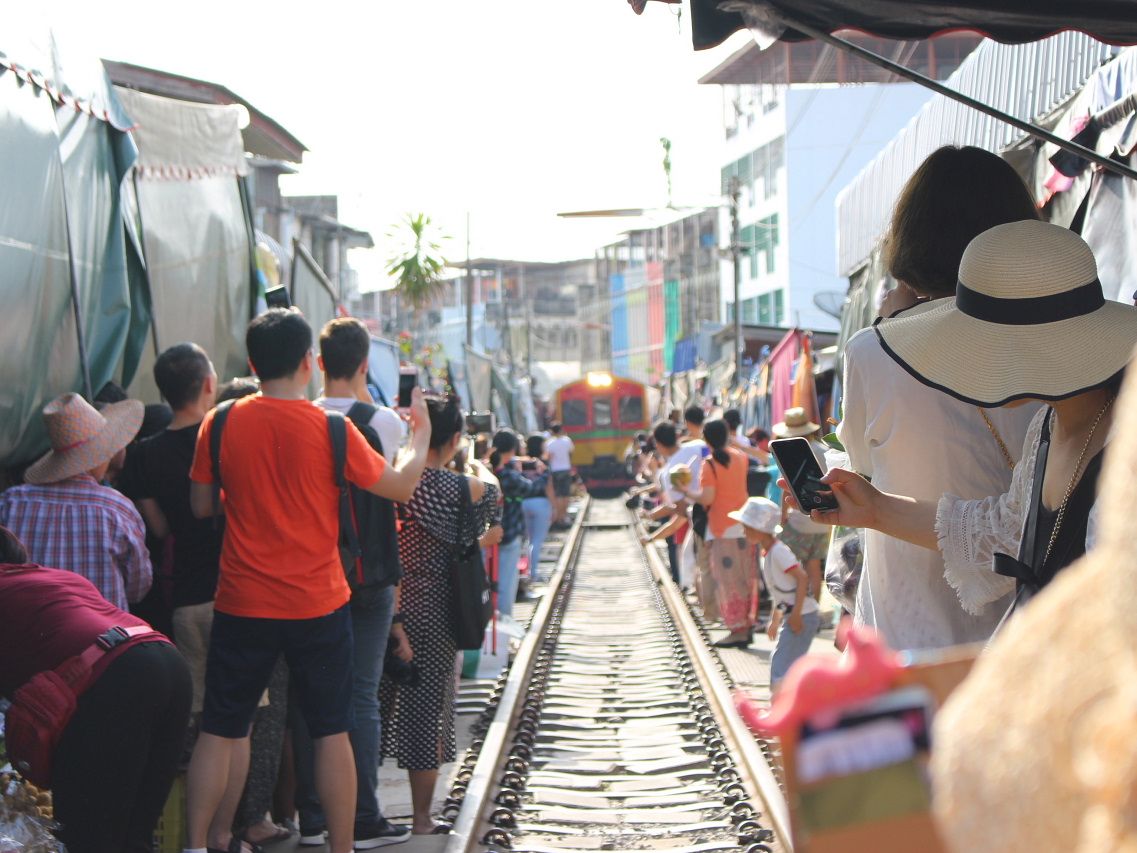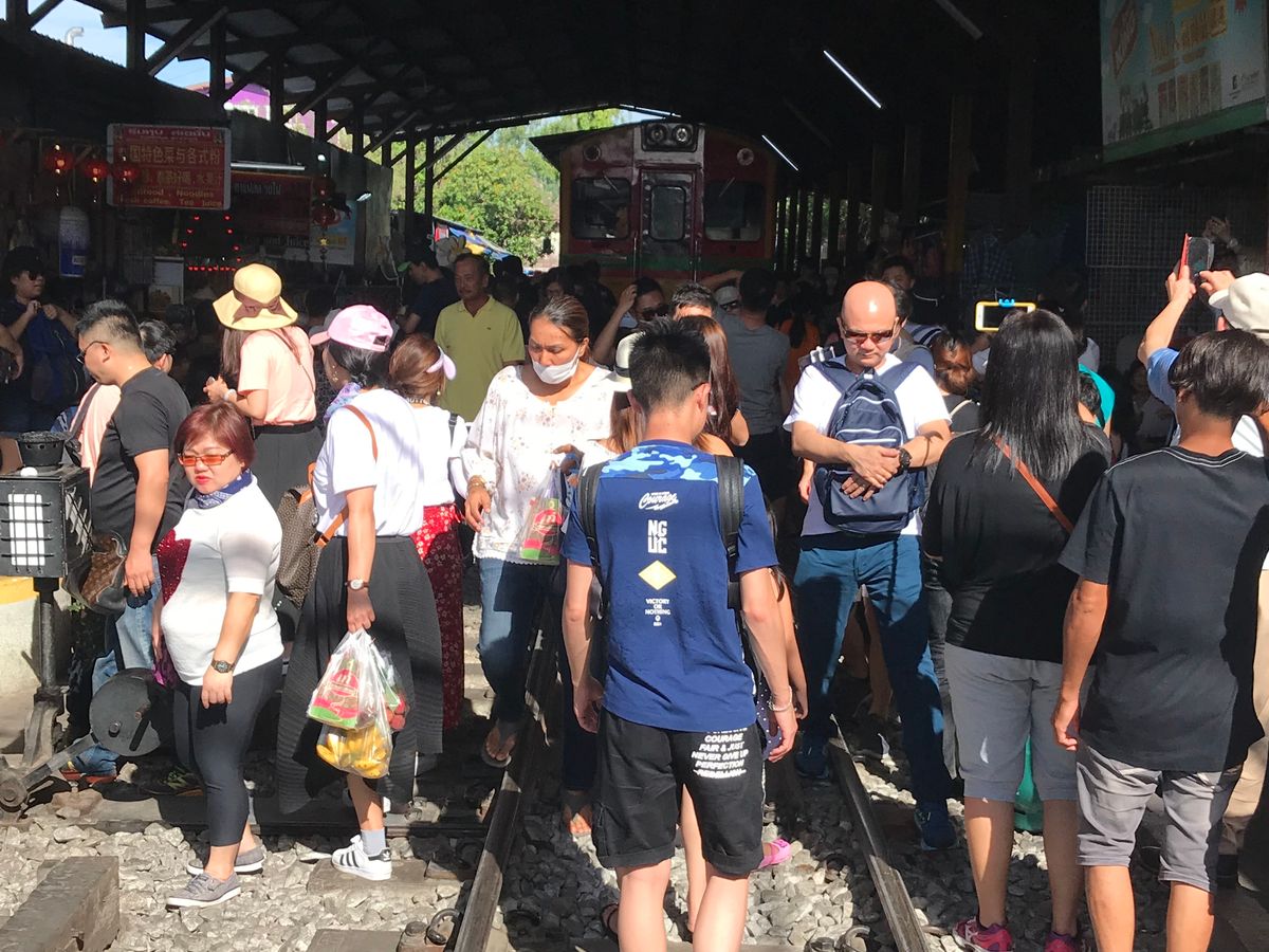 朝6時半に指定されたホテルへ集合と少し朝早い出発ですが、まずはメイクーロン市場へ移動、線路の上の市場を見学した後電車が来るまで自由時間です。線路の上の市場ではローカル感たっぷりのものが並べられており見ていてとても楽しかったです。電車の到着時刻に近づくにつれ人がどんどん増えてきて、到着時には観光客が多すぎで身動きができなくなってしまいました。