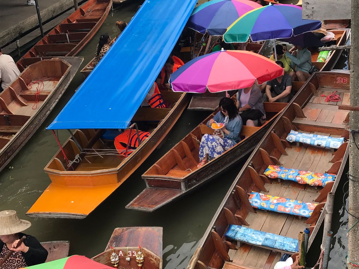 水上マーケットは手漕ぎの船に別料金で乗ったけれど、船頭のおばちゃんの友達の店なのか?寄りたくもない店に勝手に船を寄せられて、しかもけっこうしつこいのでいちいち断るのがとても面倒でした。