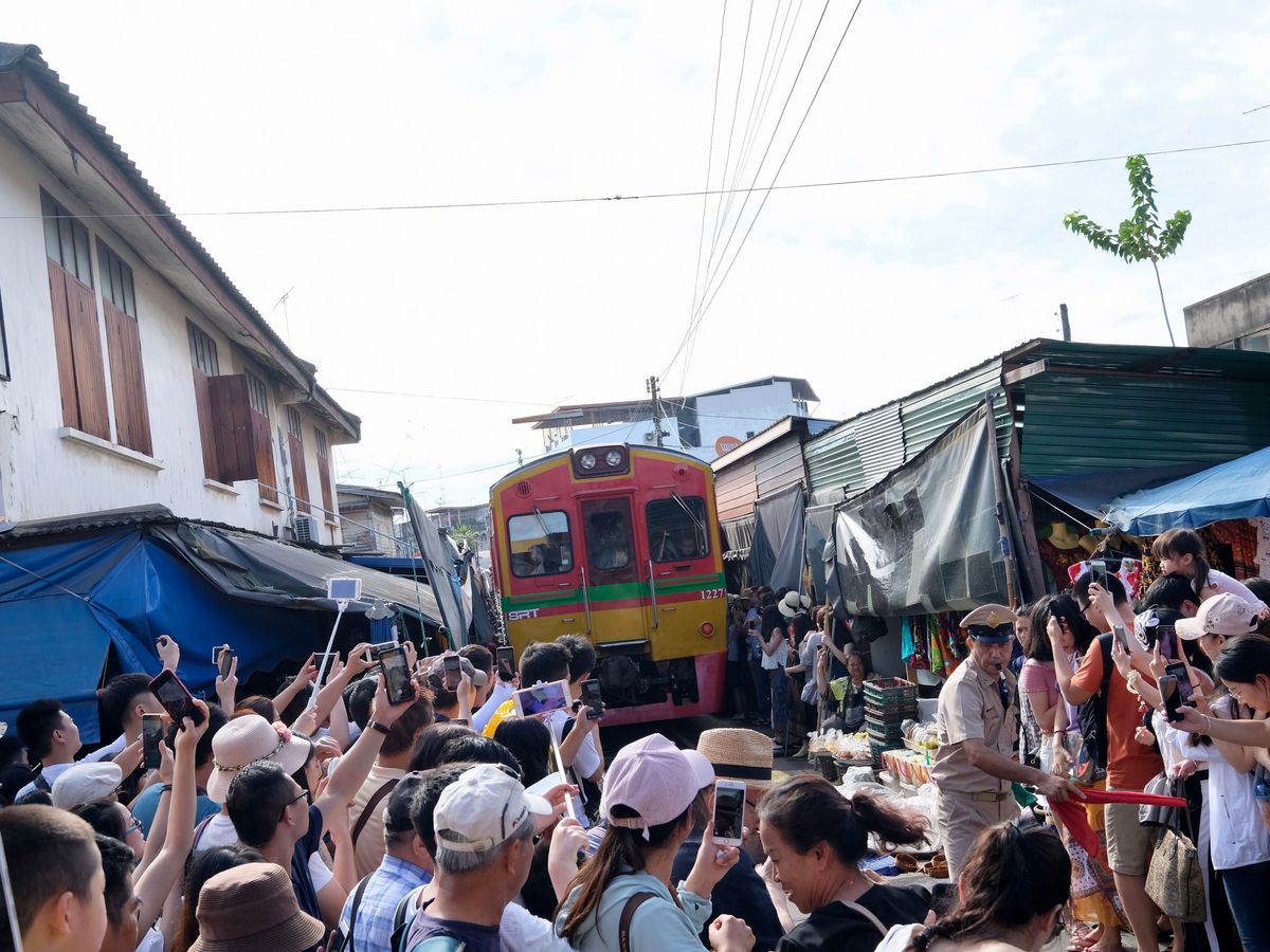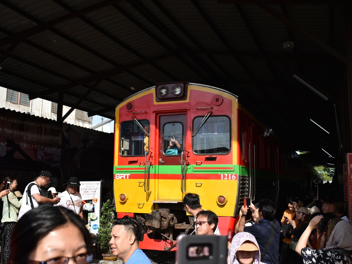 母と一緒に参加しました。私たちのほかに、男性二人参加者がいました。メークロン市場の電車が通過するときは、予想以上に目の前を通過するのでびっくりしました。しかし添乗員さんは最悪でした。ツアー内容に対して、車での移動中にほとんど説明がなく、集合時間や場所の説明も適当でわかりにくかったです。また、帰りはバンコク市内の観光をしたかったので違うホテルで降ろしてもらえるかと事前にメールでやりとりをしてOKしていたにもかかわらず、再確認の声かけもなく、終いには乗り換えが必要でどこらへんかもわからない駅で降ろされる始末でした。男性の参加者には声かけして指定された場所で降ろしていたのに、私たちは女性だから?これってもしかして差別されてる??って思いました。とっても残念でした。