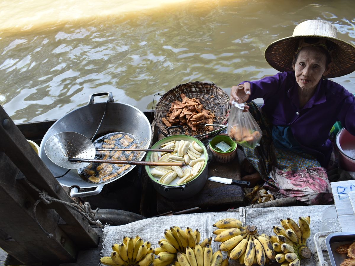 水上マーケットは映画で観た世界観に入り込んだみたいです。タイランドの人と生活実態を垣間見える体験でした。買い物は店の人が言う値段も十分の一位から値引き交渉が良いかも。