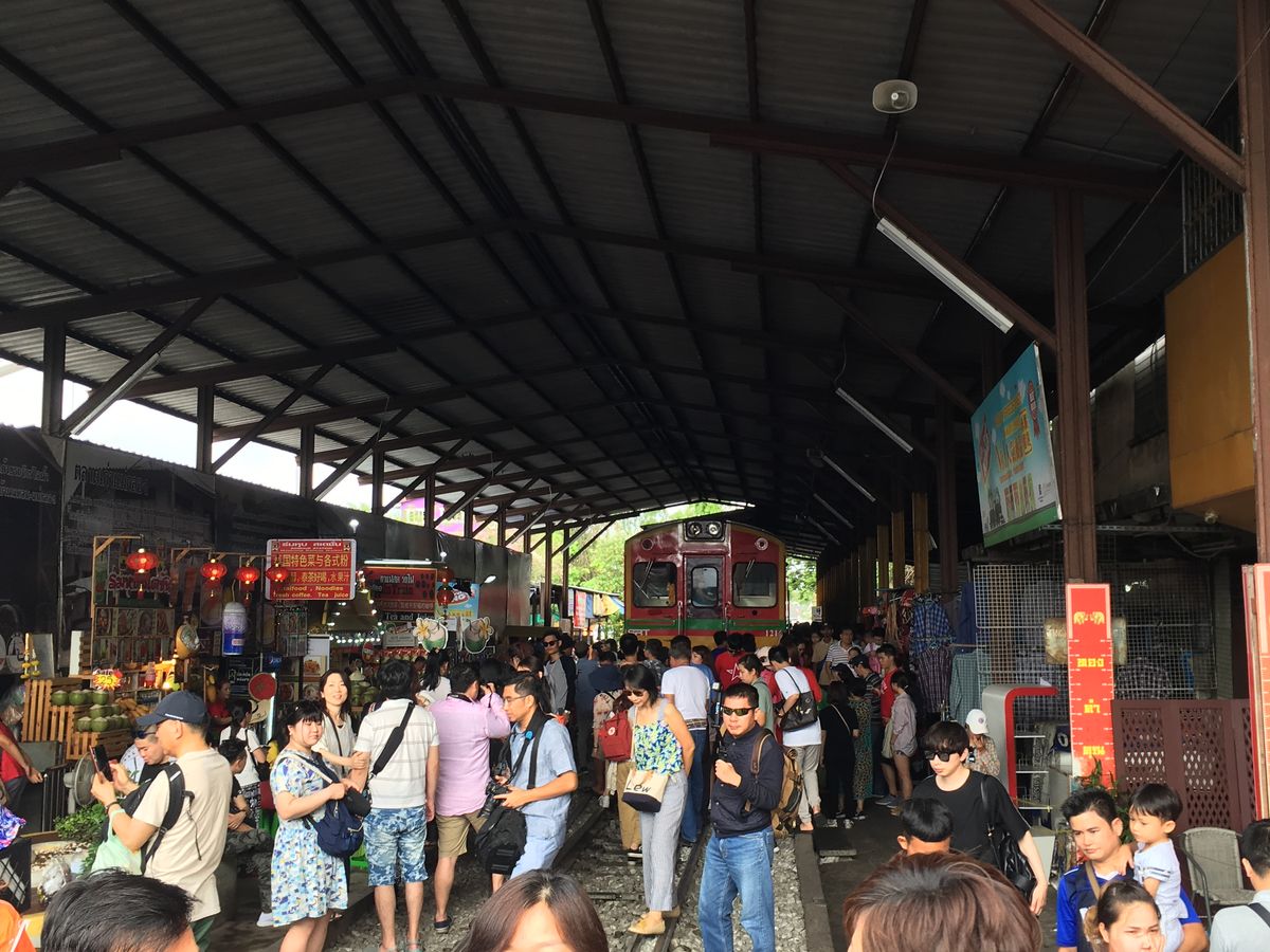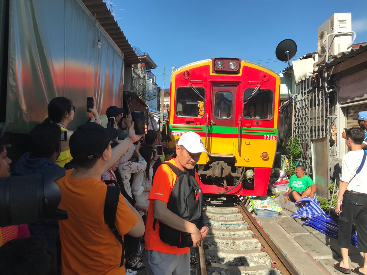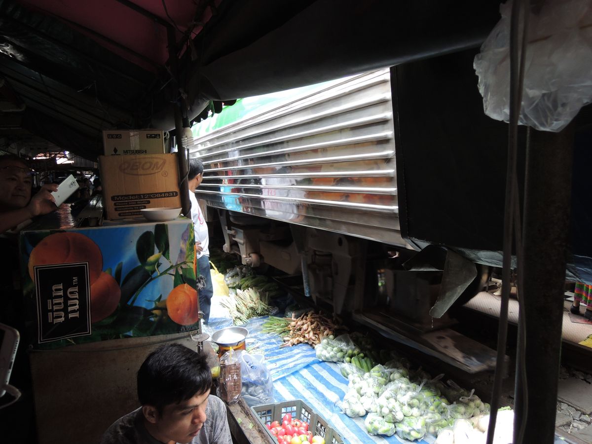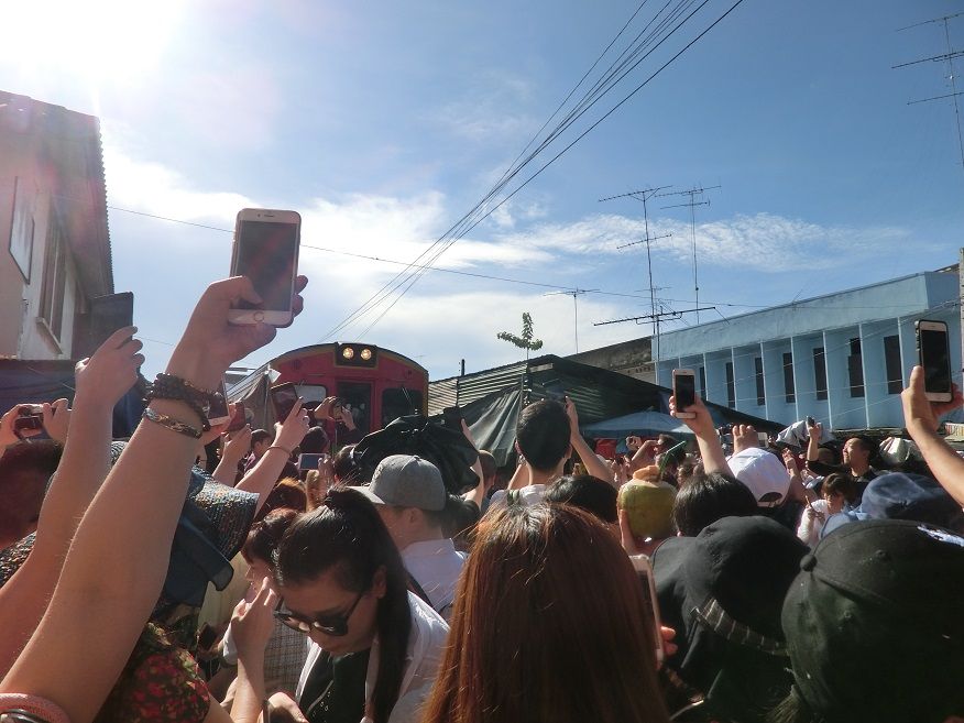 電車が通過するときに市場を畳みますが、できるだけ近くで見たいと思い少し前に行くと現地の方に「No!」と言われてしまいます。先によく見える場所をガイドさんに聞いたほうが良いと思います。