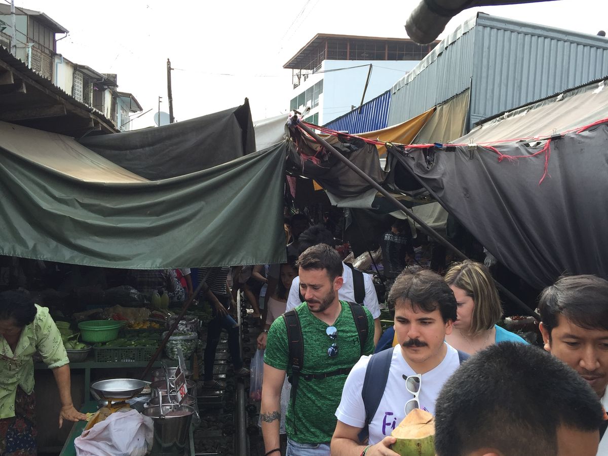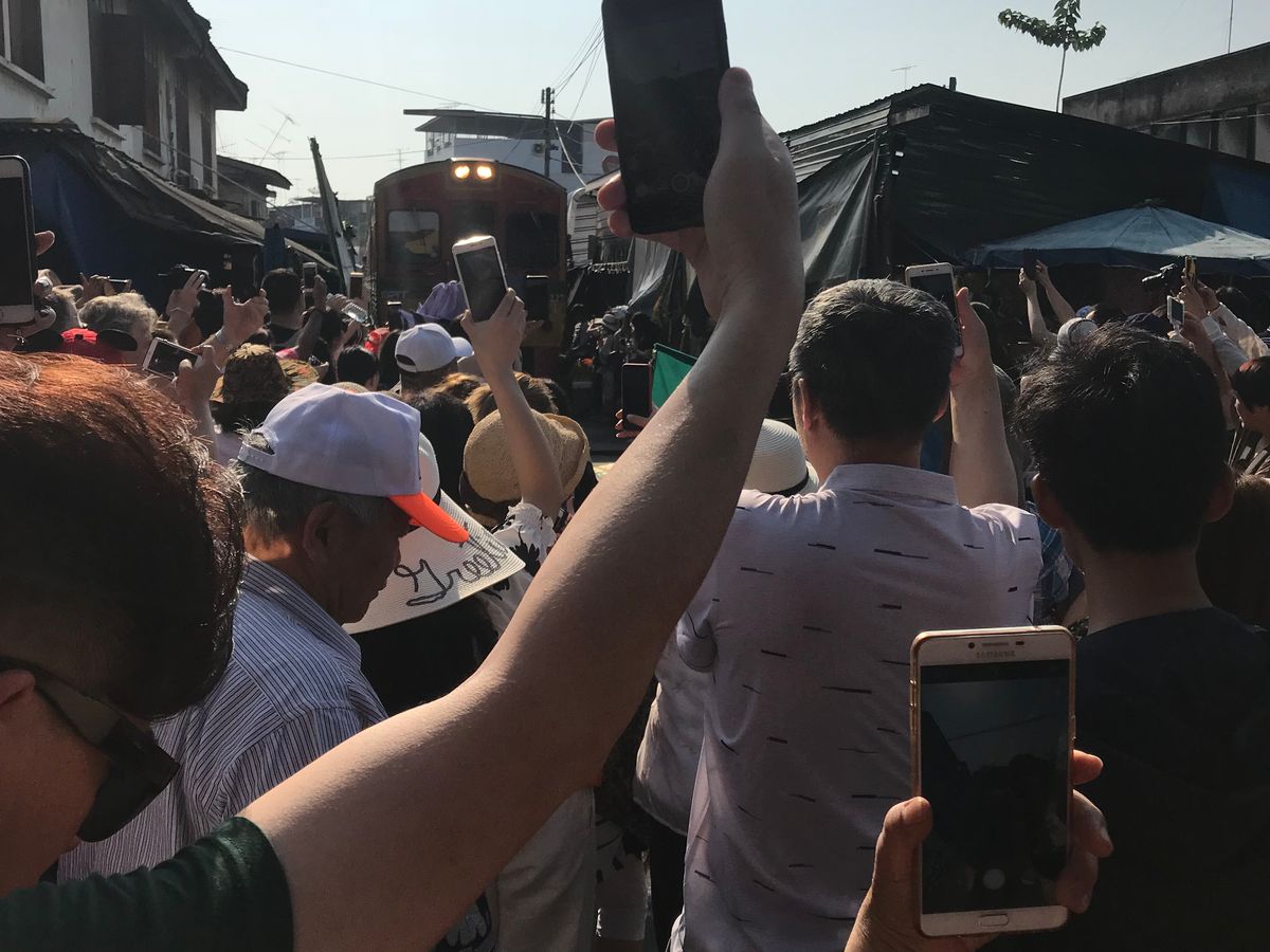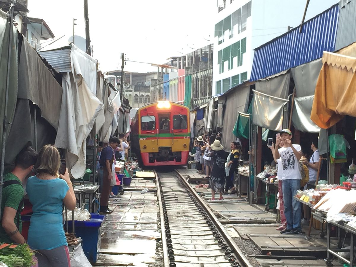 電車が通過するときに市場を畳みますが、できるだけ近くで見たいと思い少し前に行くと現地の方に「No!」と言われてしまいます。先によく見える場所をガイドさんに聞いたほうが良いと思います。