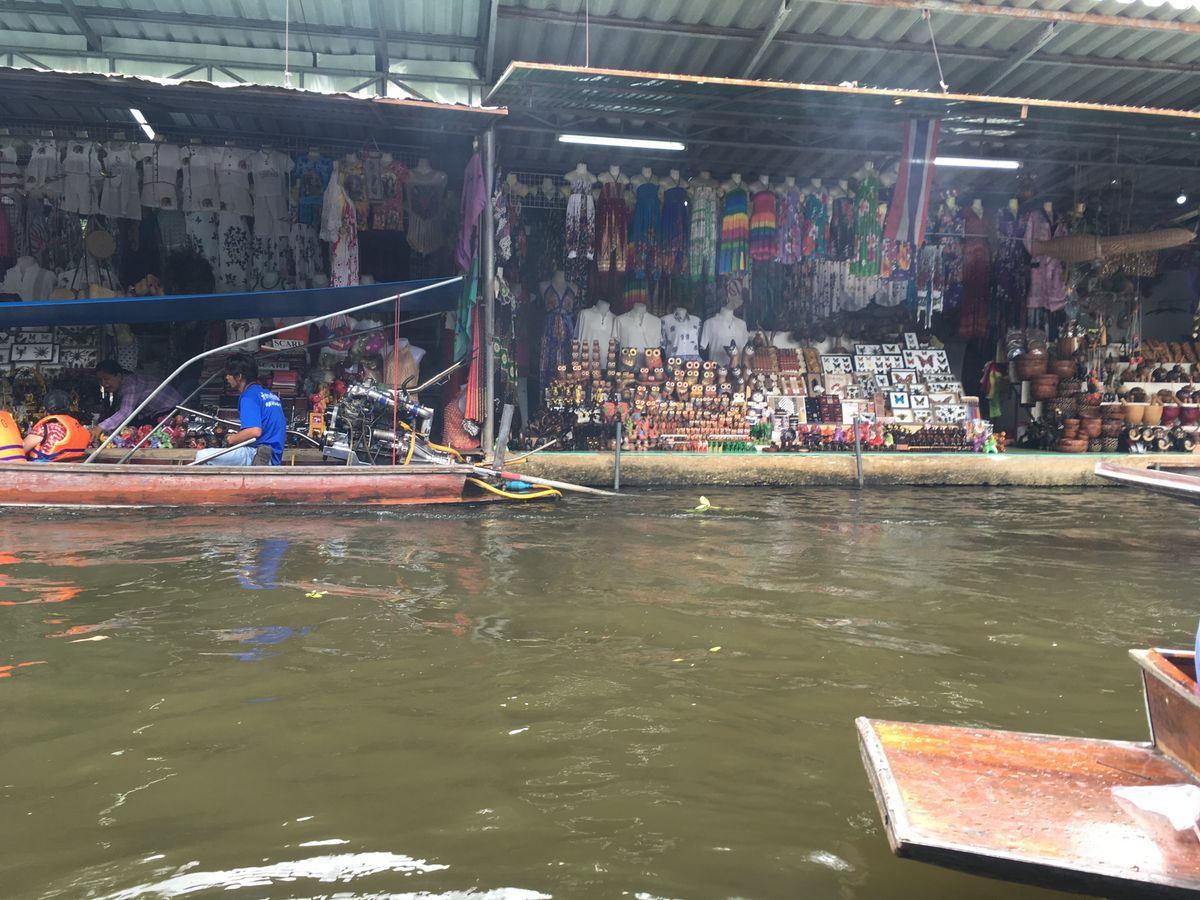 水上マーケットだけ参加する人も多いかと思いますが、メークロン市場つきのこちらの方がおすすめです。線路上でマーケットが広がってて、畳んですぐ電車が入ってくるのが圧巻です。見れて本当によかったと思いました。一緒に行った夫もすごい驚きようで喜んでました。ココナツファームはトイレ休憩ってかんじ。ティッシュは持参で。水上マーケットはモーターボートでマーケットまで行くのがとにかく面白い。手こぎボートは一人100バーツ払いました。ボート上でココナッツアイスを70バーツで買いました。美味しくておすすめです。水上マーケットは行く時間が遅いのかピークの時間が外れてて落ち着いてる感じがしました。活気がある時間も気になりましたがまあ落ち着いてたしココナッツアイスも買えたからよかったです。タイラーメンは少なめですがおいしかったですよ!ビールも50バーツで売ってます!私が行ったのが土曜日でしたが渋滞が全くなく13時にはバンコク市内に戻れてよかったです!本当におすすめです。