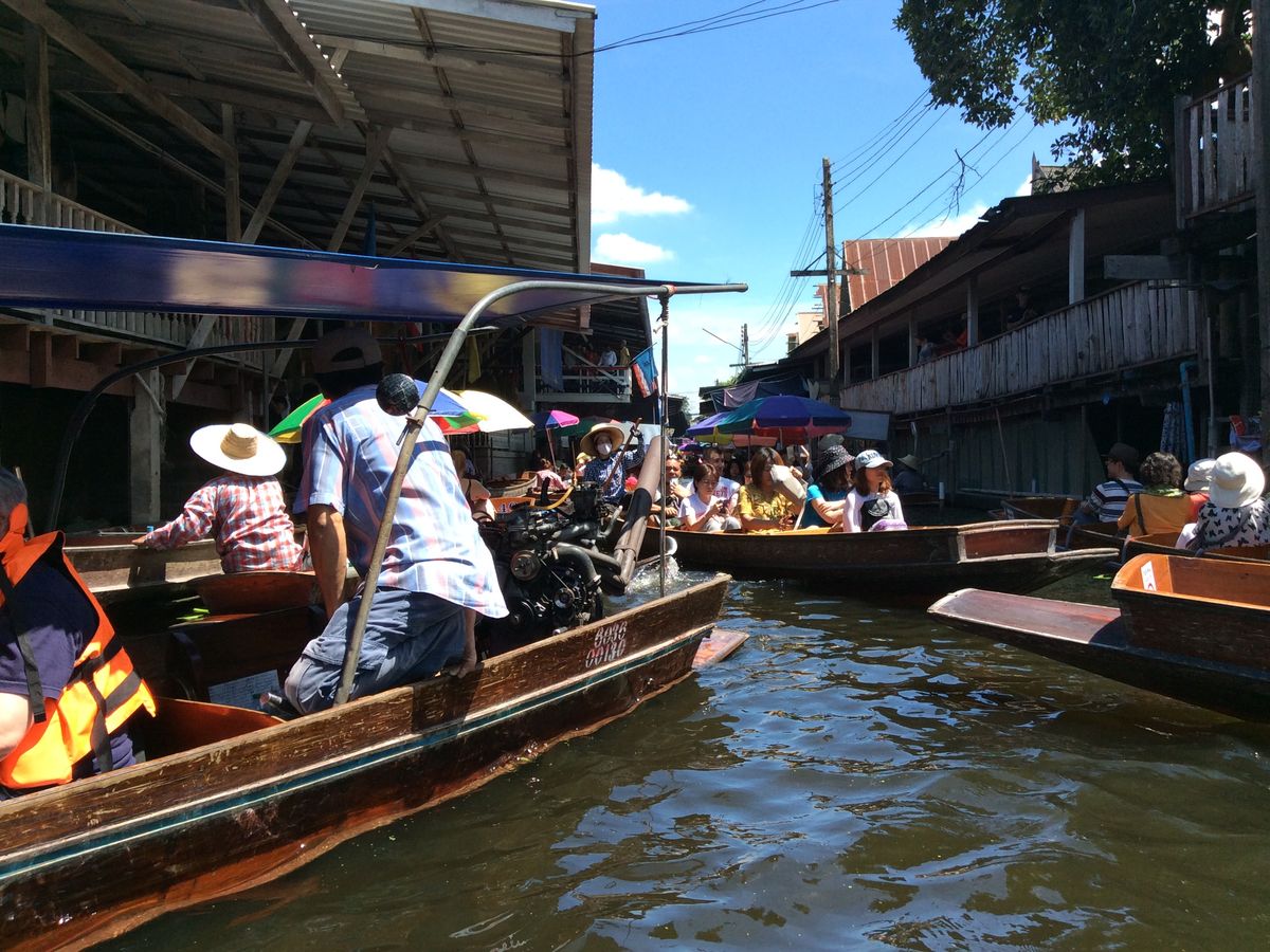 朝の出発は早かったですが、そのおかげで、水上マーケットではほとんど待ち時間なくボートに乗ることが出来ました。降りた時には順番待ちになっており、マーケット自体もボート渋滞で身動きが取れないくらいでした。