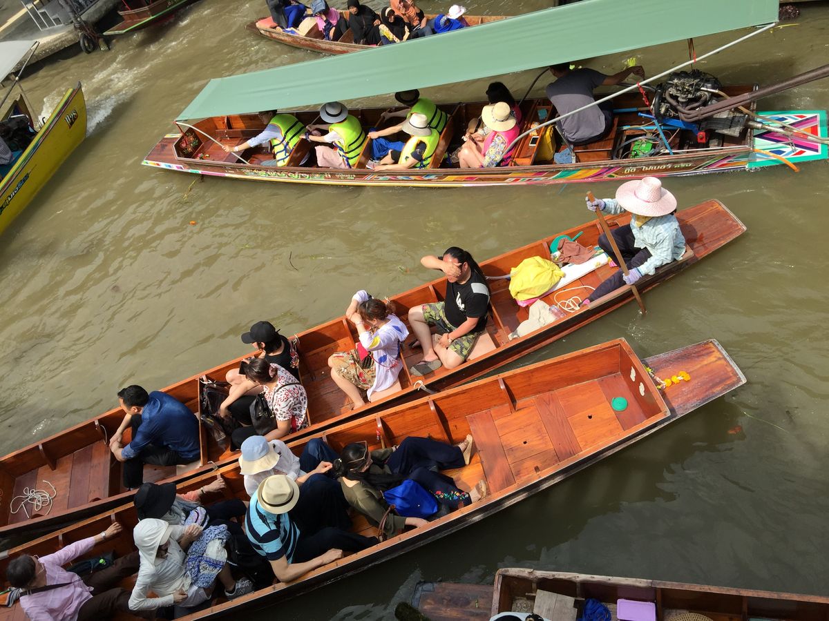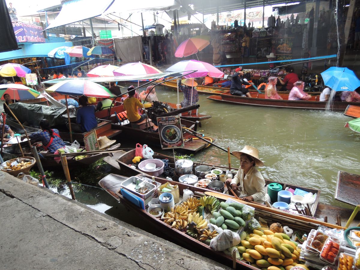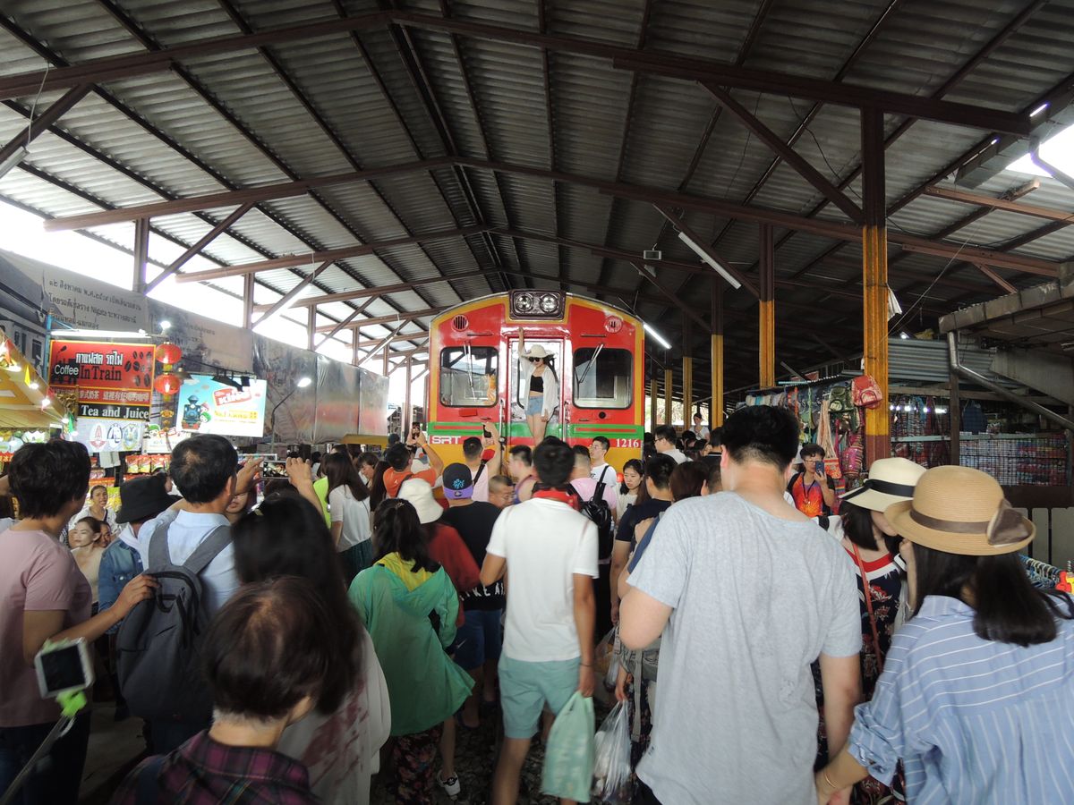 市場はすごい混んでいて、列車が通る瞬間を見るのに場所どりした方がいい。水上マーケットはのんびりできた。