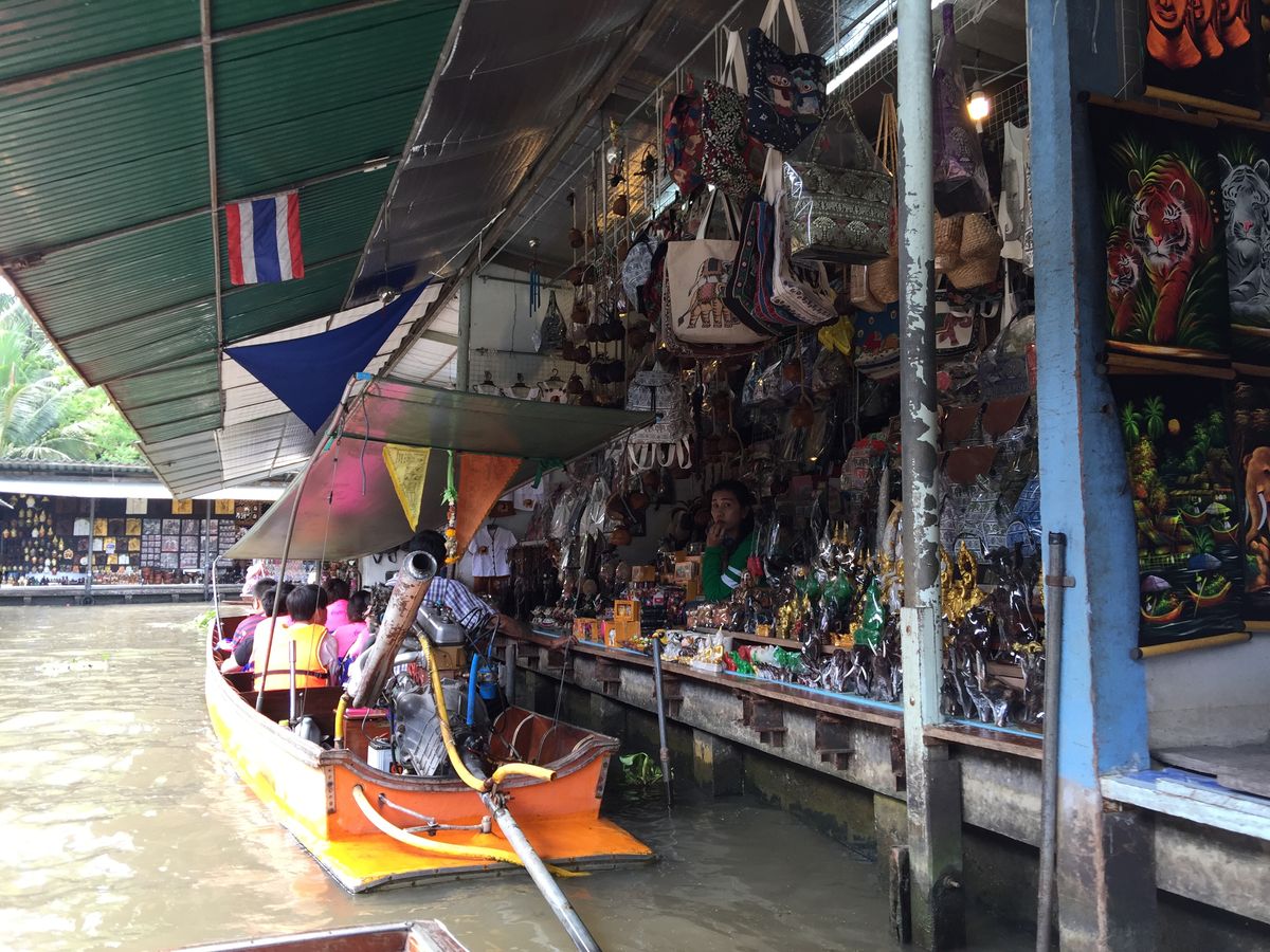 船頭が特定の店の前で止まって、売り子が商品を勧めてきますが、価格は普通の土産物屋の数倍するので、雰囲気だけ楽しんでここでは買わない方が良いと思います。押しはかなり強いです。