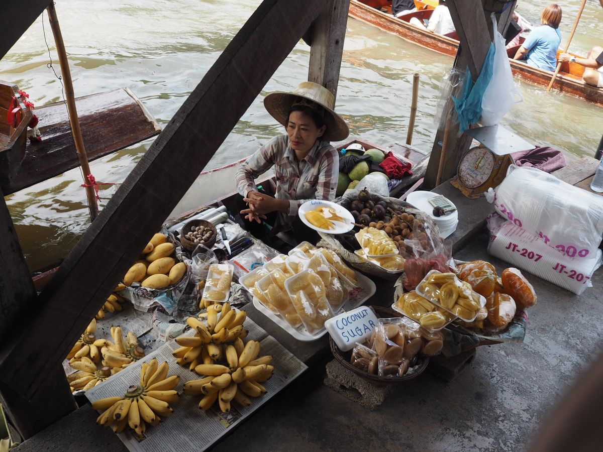 やはり水上マーケットの方は観光化しており物価も陸上よりずっと高騰していますし、日曜に訪れたこともあってか水路は船で大混雑で風情等はありませんでしたが、水上で買物というのが楽しかったです。ガイドさんも親切で水上マーケットは高いということもちゃんと始めから教えてくれていましたので高くても納得して買えました。