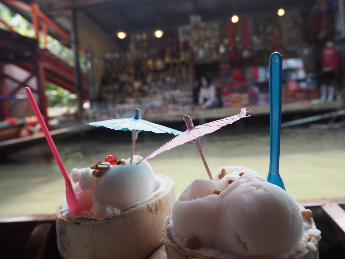 水上マーケットで食べた揚げバナナとココナツアイス美味しかったぁ〜