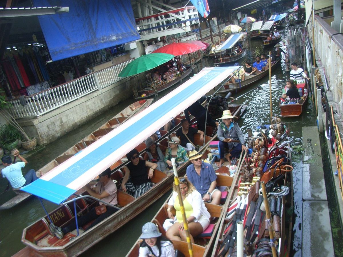 朝早くからホテルに迎えに来てもらえて助かります。「線路市場メークロン」は、聞きしに勝る、興奮できた体験でした。本当に映像で見る以上にすごい!毎日商品を売っている人には何でもないのでしょう。電車も慣れたものです。日本では絶対にありえません。「水上マーケット」も楽しい場所です。最初、ボートはかなりのスピードで走りますが、モノを売る船が多くなると、ものすごい押し合い圧し合い状態です。自分は、少々おなかが心配でしたので何も食べませんでしたが、うまそうです。最後に昼食でおいしいラーメンとアイスをいただき、満足できたツアーでした。
