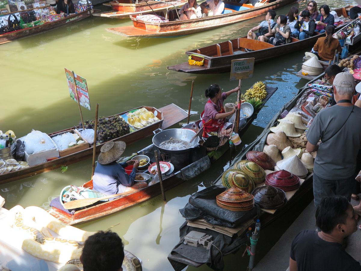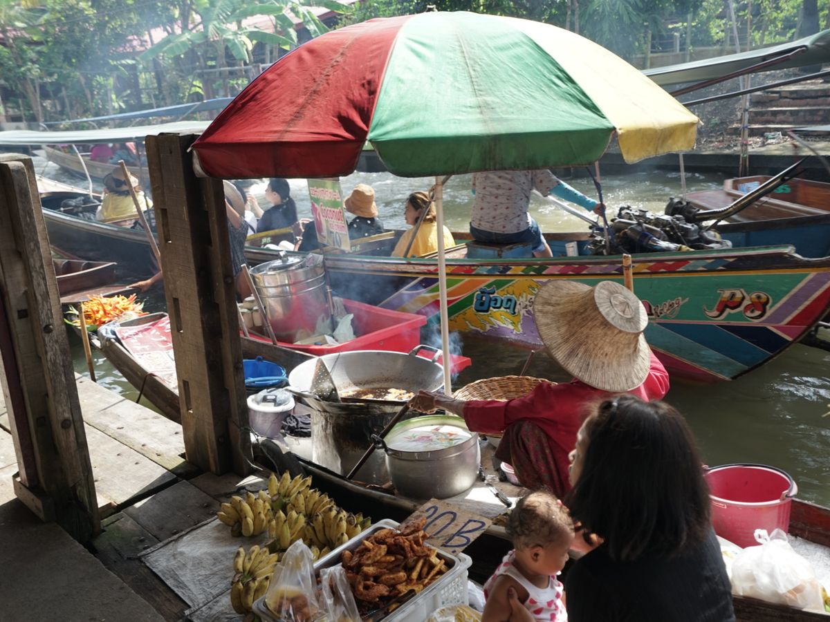 手漕ぎボートにも乗ろうかと思っていましたが、さすがタイは水上まで渋滞で(笑)、乗らずに揚げバナナなど買い食いしてましたが、楽しかったです。