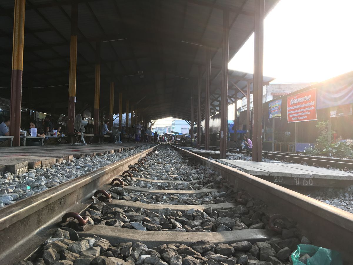 ツアーでは、まず線路市場のはじまりから線路を歩いて市場を見学し、市場が終わる終点で電車がやって来るのを待ちました。