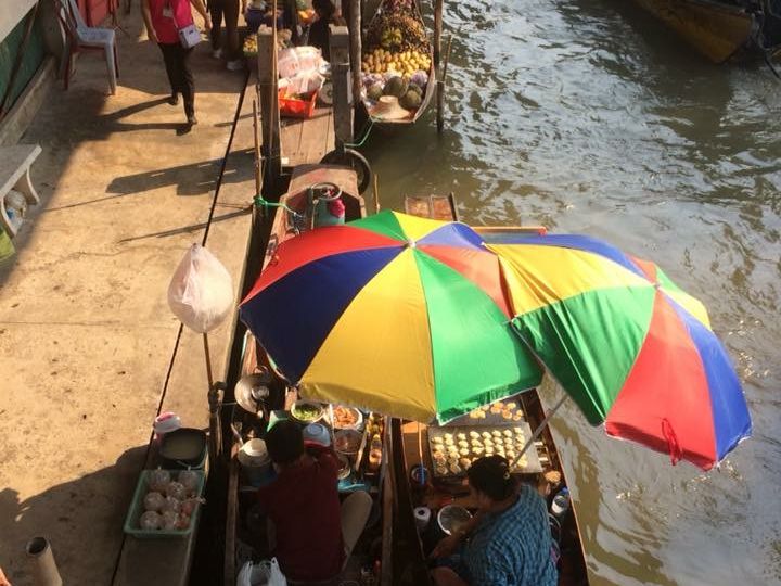水上マーケットは市場に行くまでのスピードボートも楽しかったです。マーケットも賑やかでよかったです。手漕ぎボートは曜日や時間によって混雑しまくって動き辛くて満足できない事もあるので注意です。昼食のタイラーメンは豚骨味なのですが透明スープのあっさりで非常に美味しかったです。